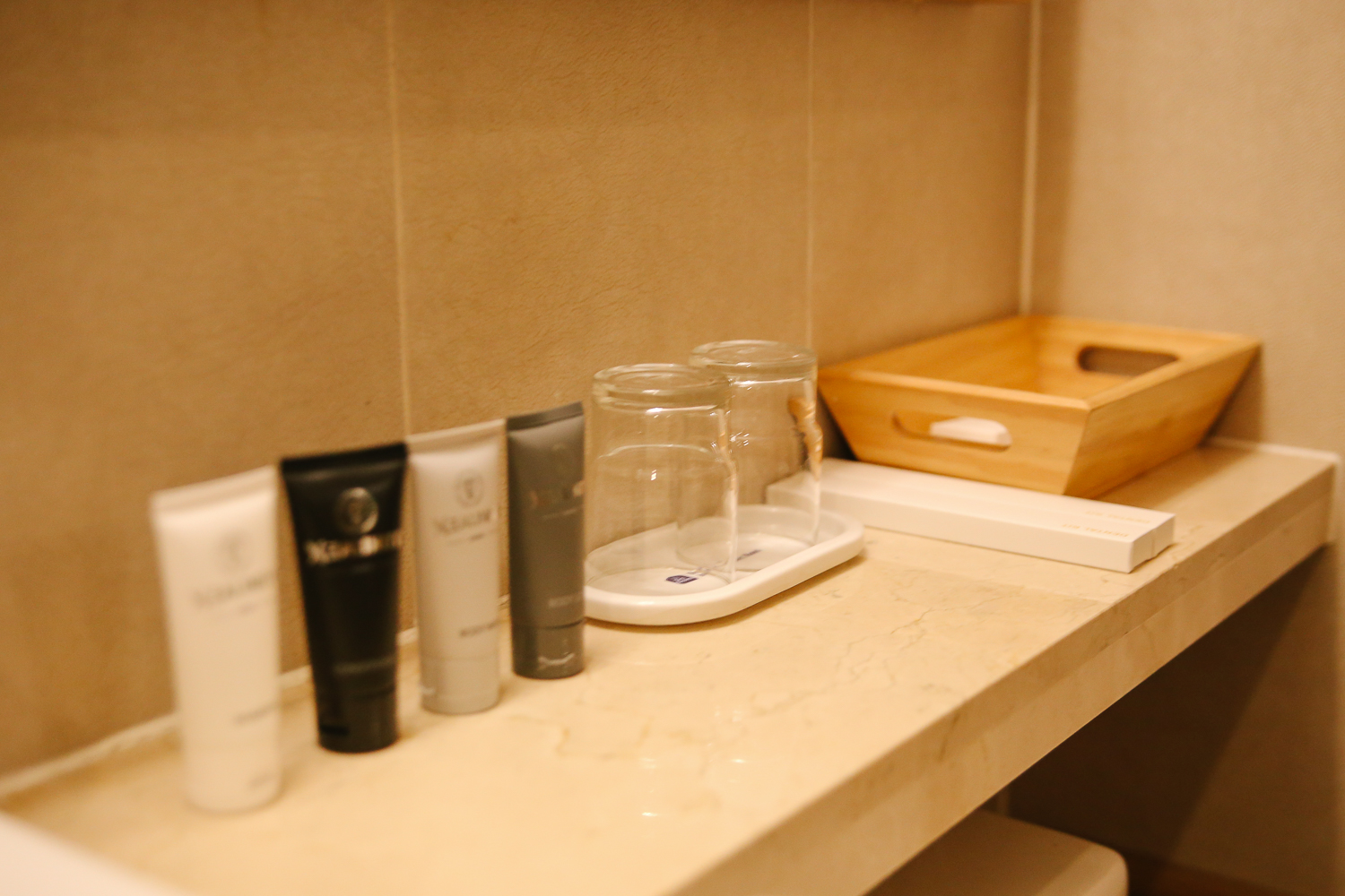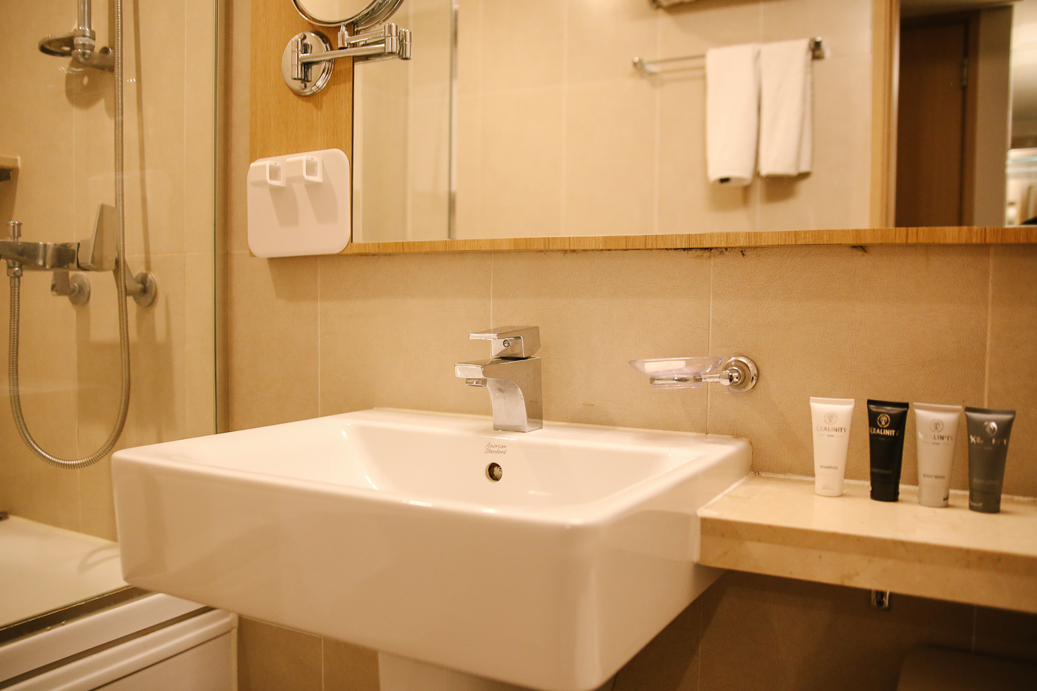 샴푸, 린스, 바디클렌저, 칫솔 등 이 구비되어 있었다. 가운과 수건도 넉넉히 있었다.