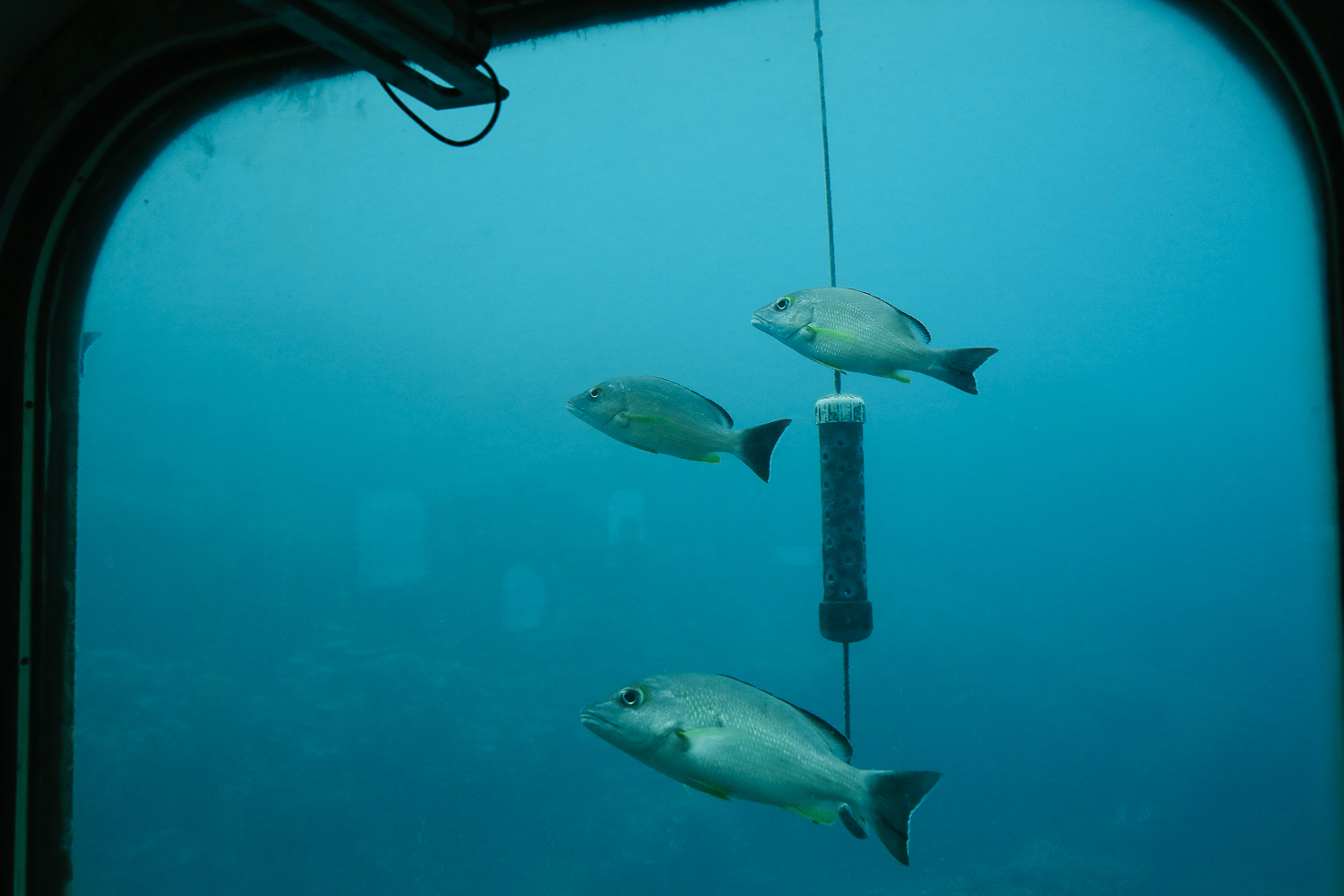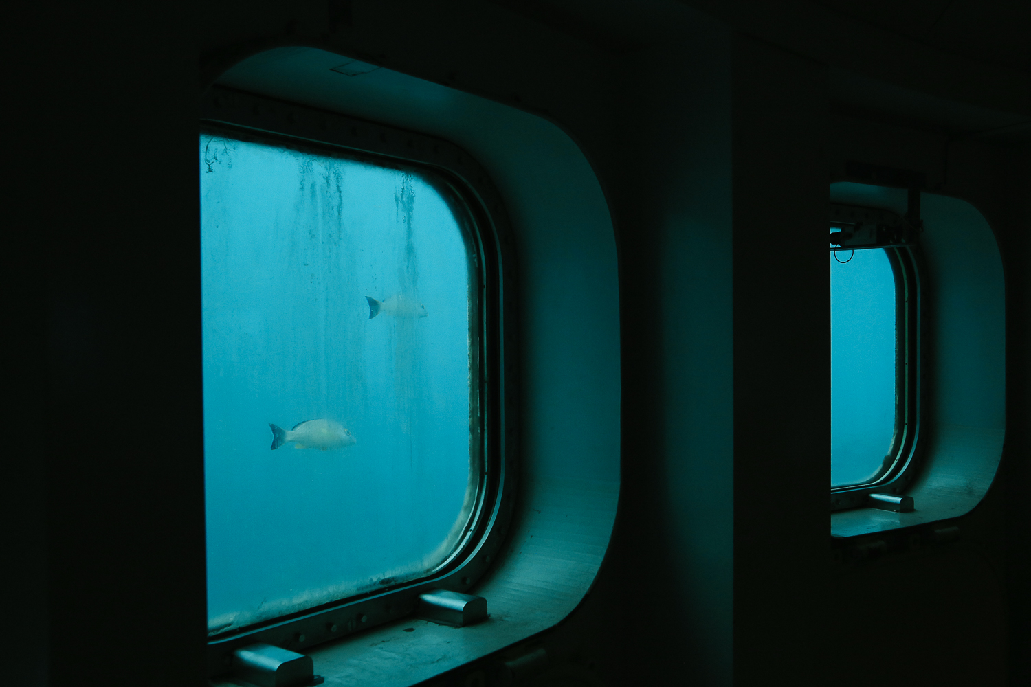 깊게 내려온 해중전망대에서 창문 너머로 지나다니는 열대어와 해양생물들을 볼 수 있었다. 해중전망대는 원형으로 되어 있어서 창문 라인으로 쭉 둘러보면 어느새 한 바퀴를 둘러보게 된다. 계단 바로 아래쪽으로 앉을 수 있는 벤치가 있어 구경하다가 휴식을 취할 수 있었다.