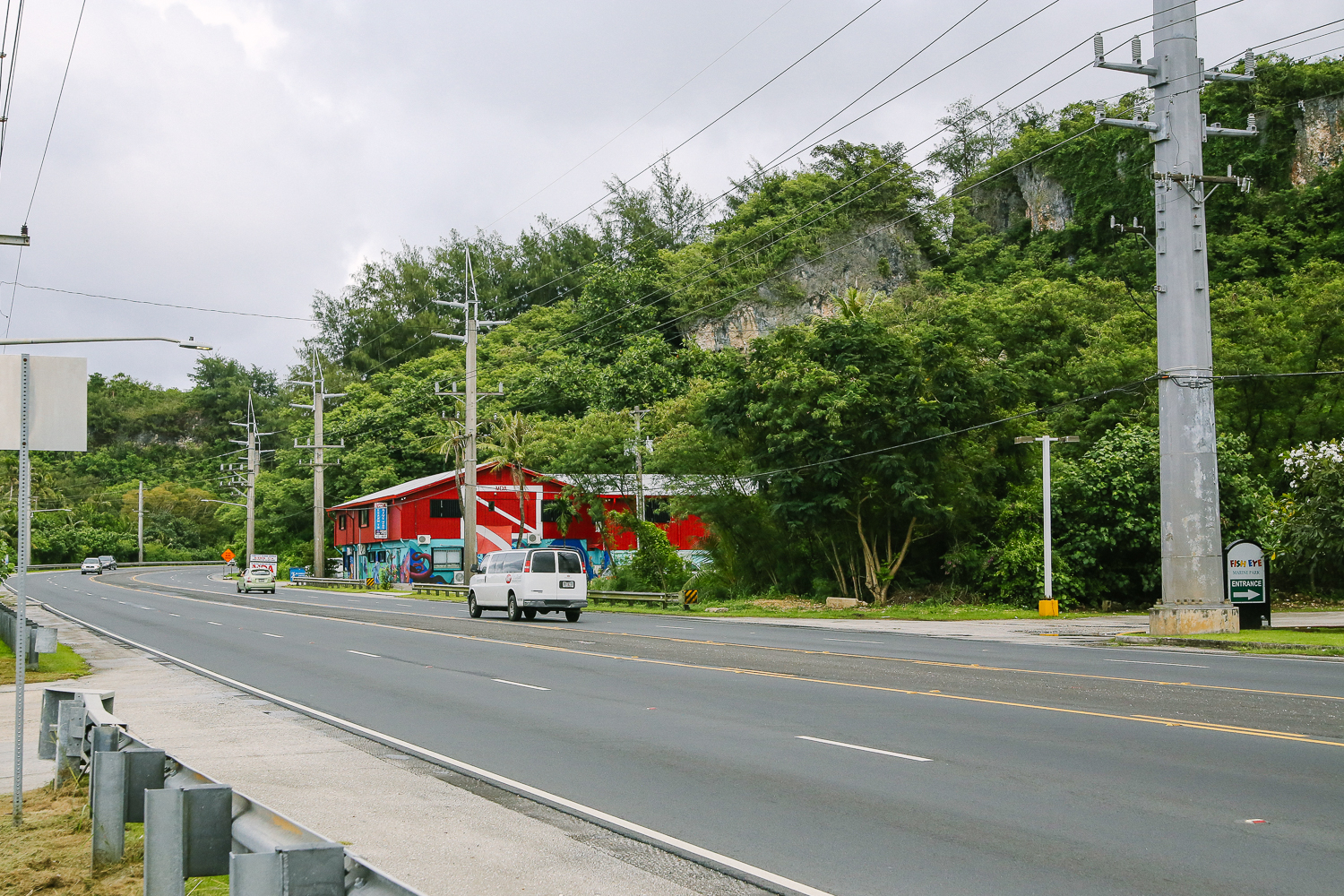 식사를 하기 전 간단하게 담은 도로변 뷰. 한국과 달리 차량도 드문드문 다녀서 좋다. 돈이 없는 거지조차도 차가 있다는 괌. ㅋㅋ 그만큼 걸어 다니는 사람을 보기란 여간 힘든 일이 아니다.