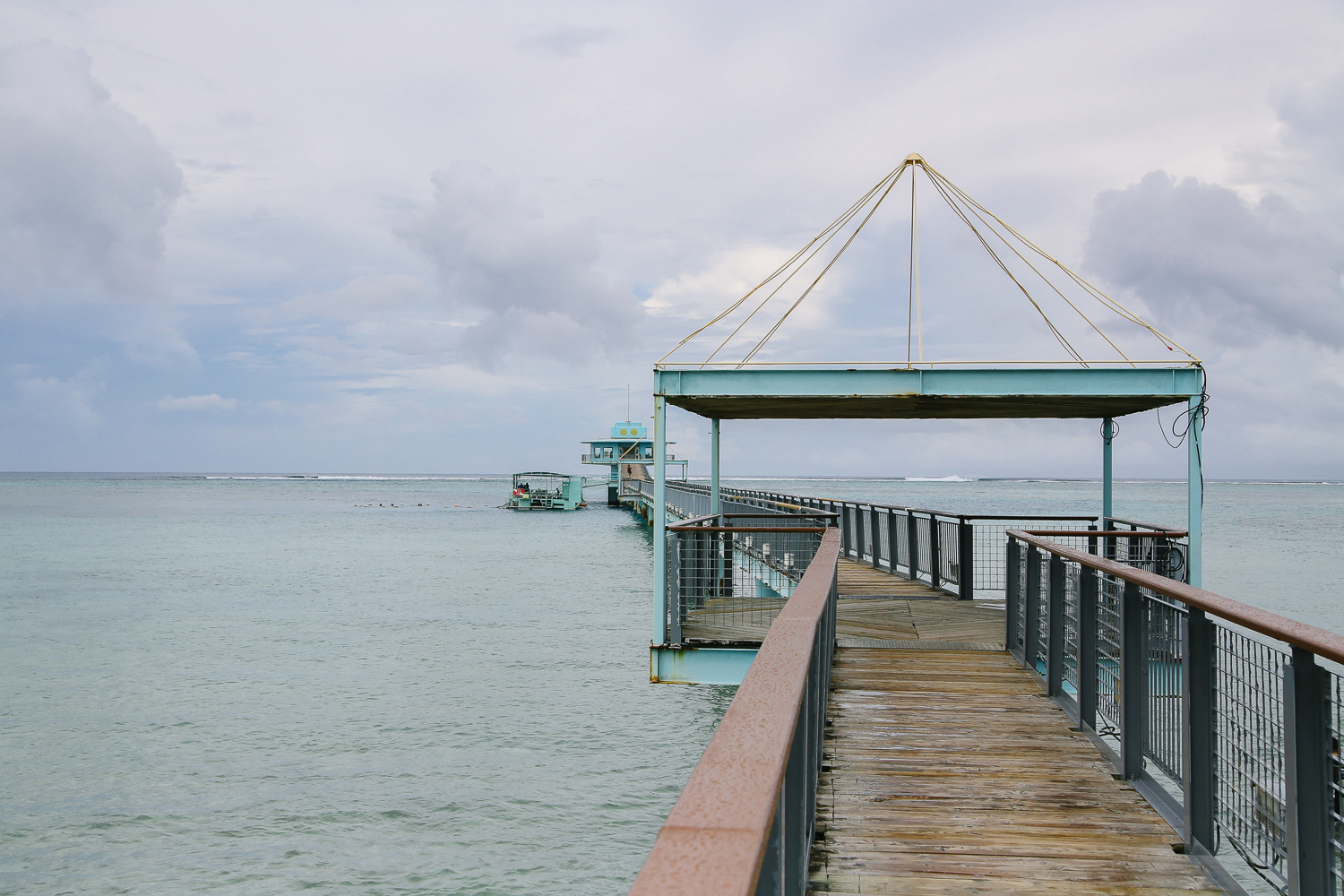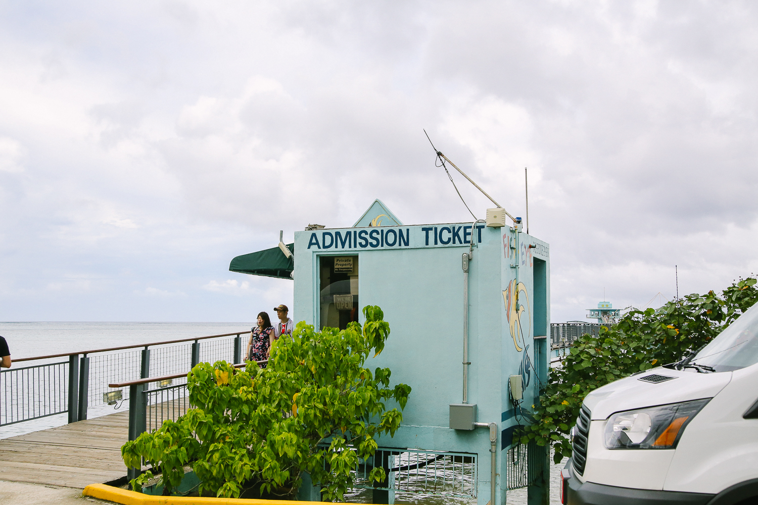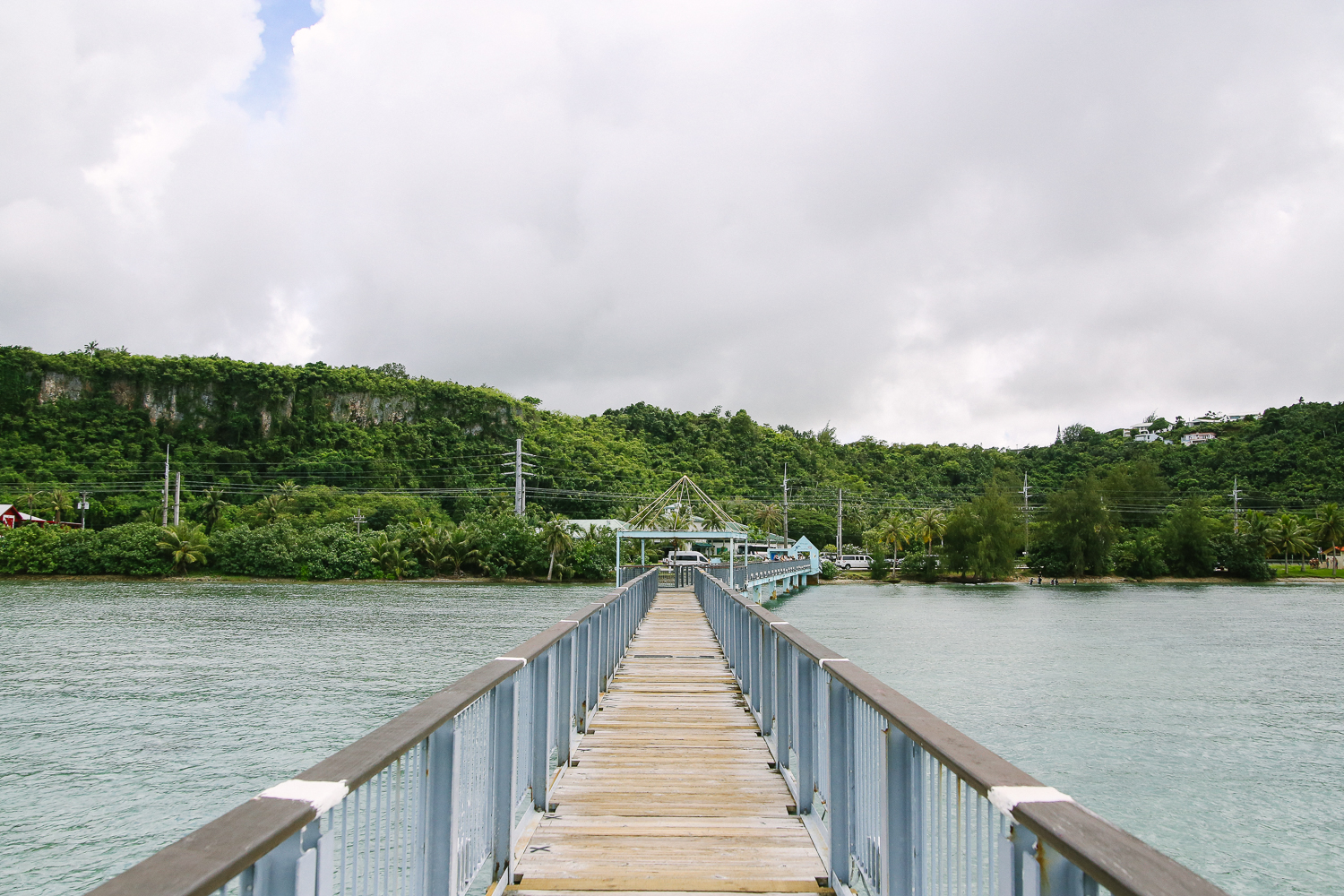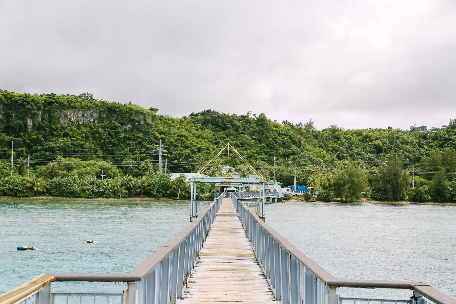 요렇게 앙증맞고 티켓스러운(?) 감성이 느껴지는 표를 끊고 전망대를 향한다. 괌 특성상 비가 내렸다 멈췄다를 반복하기 때문에 다리 초입 부분과 전망대 부분에 노란 장우산을 비치해놓았다. 200m 다리라서 조금 걸어야하는 편이다. 성인 도보 기준으로 걸어갔을 때 약 10-20분 정도는 소요된다.