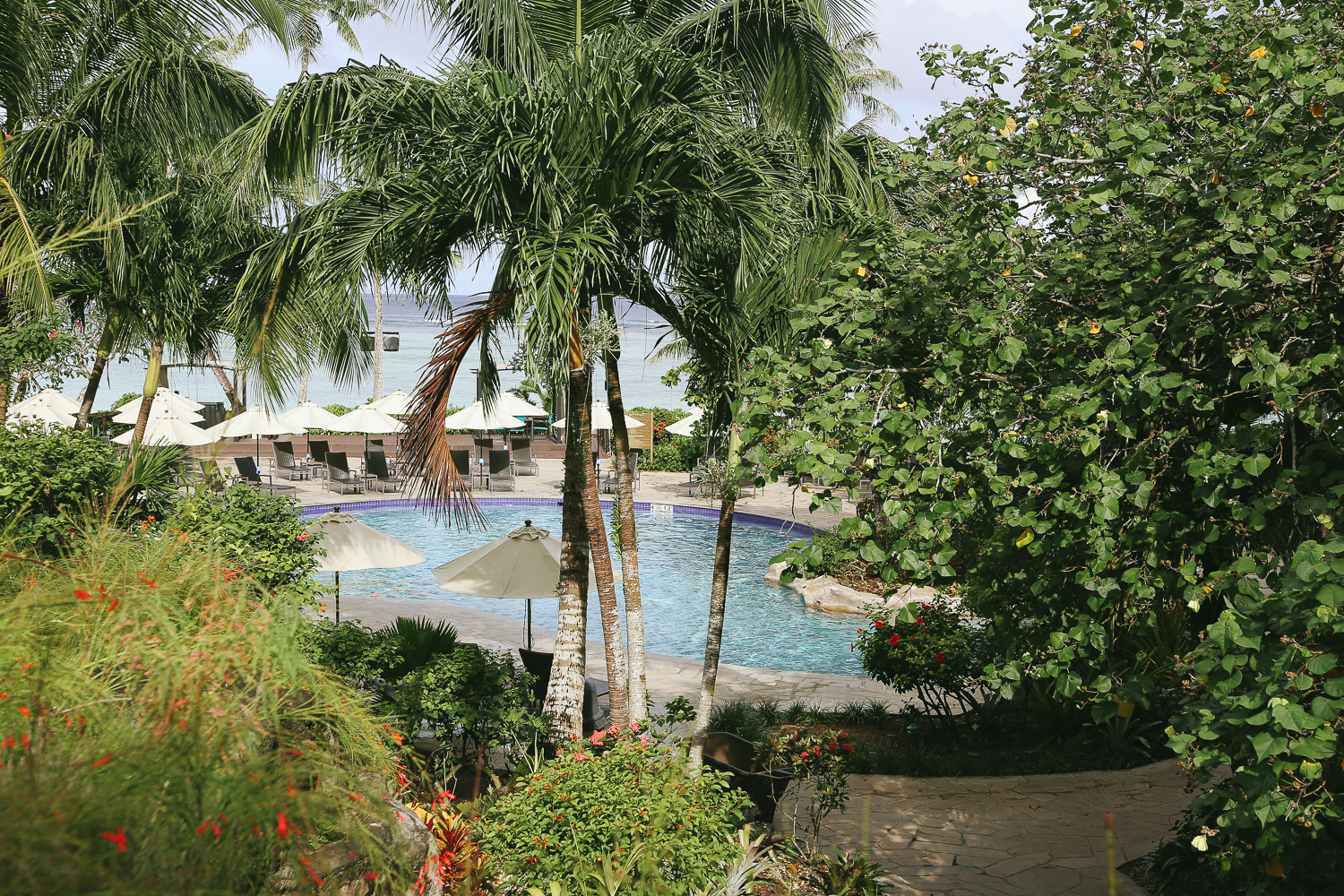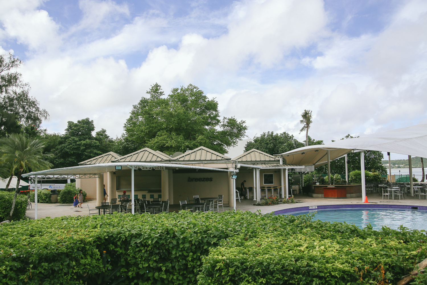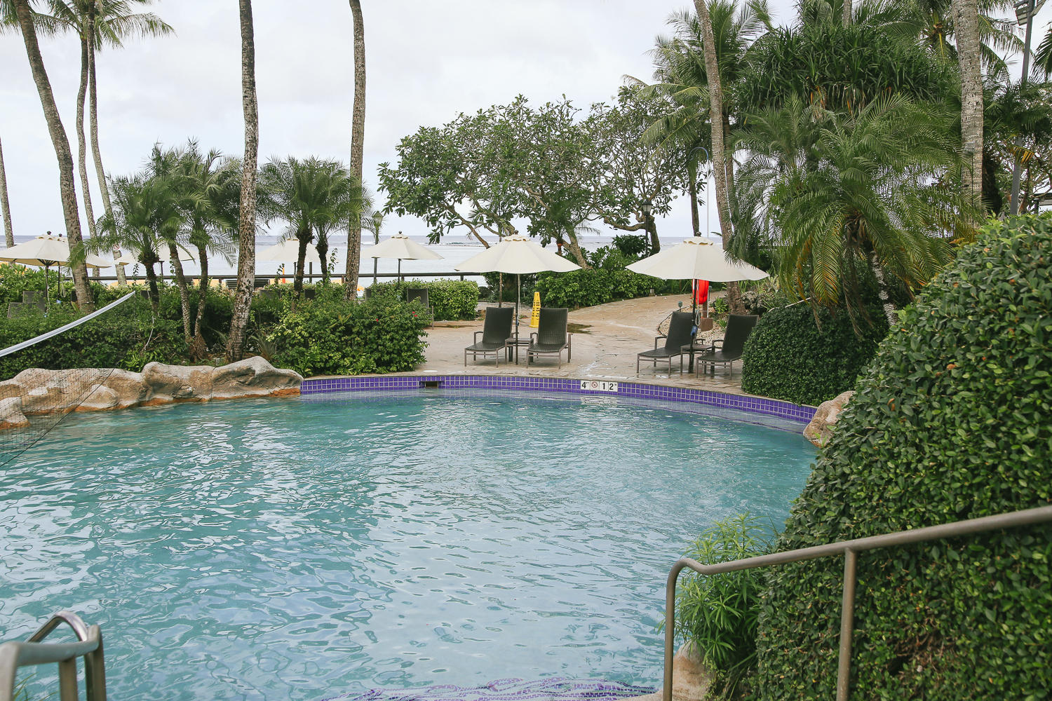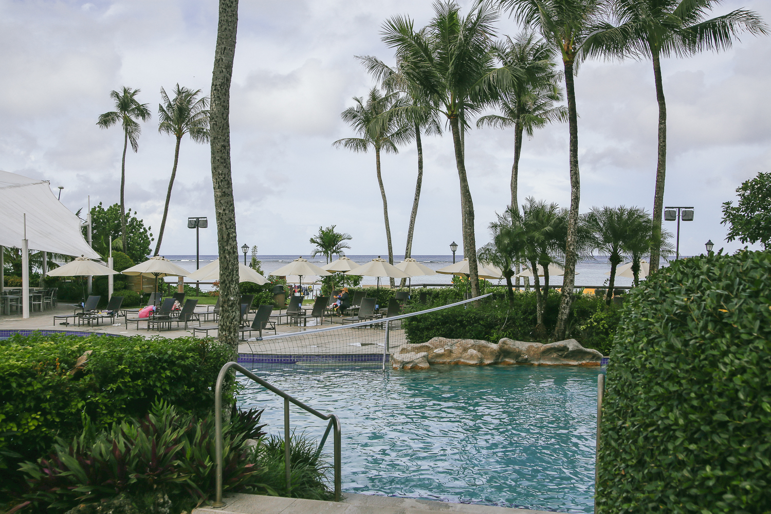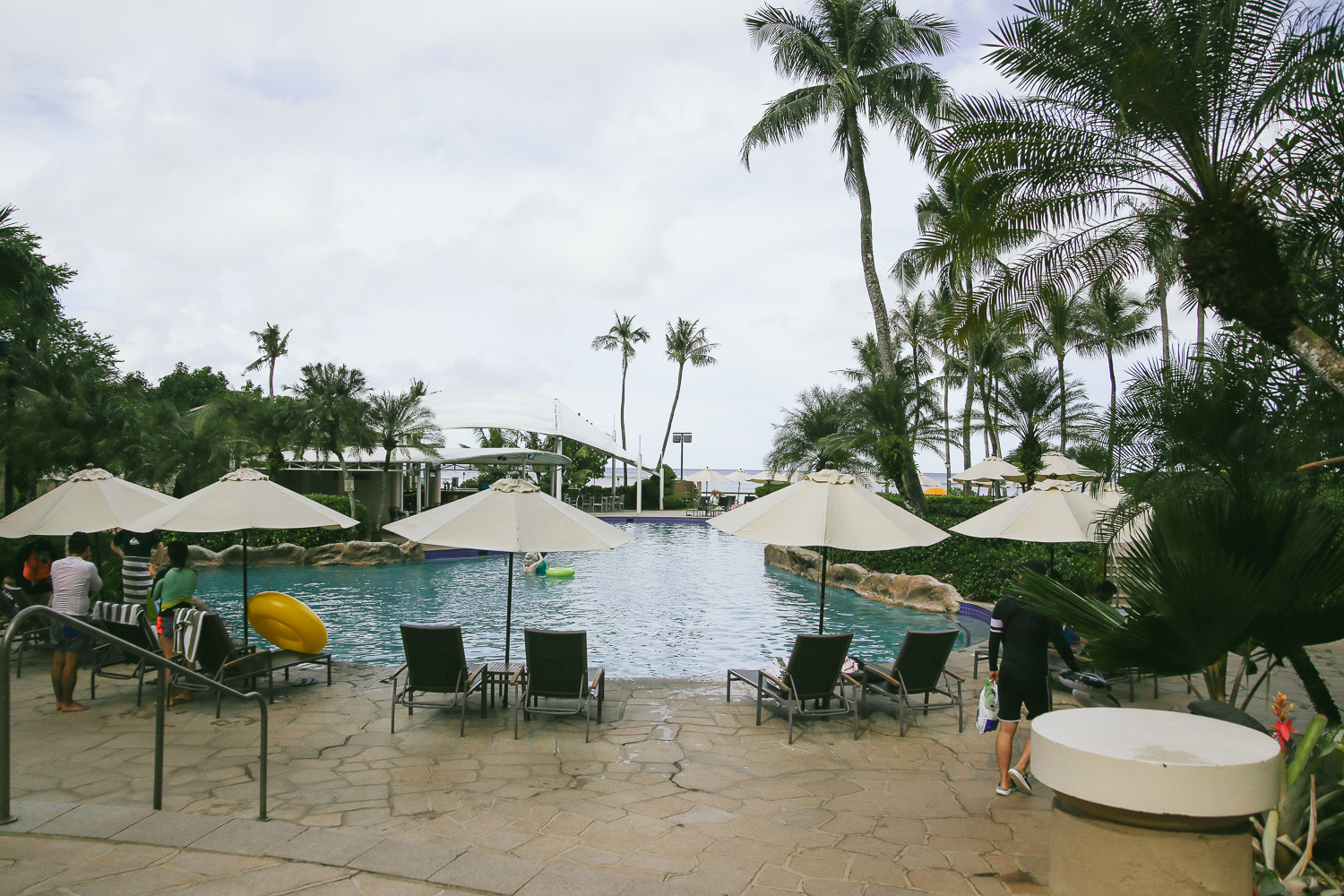 이곳은 우리가 머물렀던 하얏트리젠시 괌 호텔에 풀장이다. 호텔에서 머무는 사람이라면 어느때는 편하게 객실 발코니 뷰에서도 볼 수 있는 풀장과 해변 전경. 그 중 익숙하게 볼 수 있는 수영장이 있다.