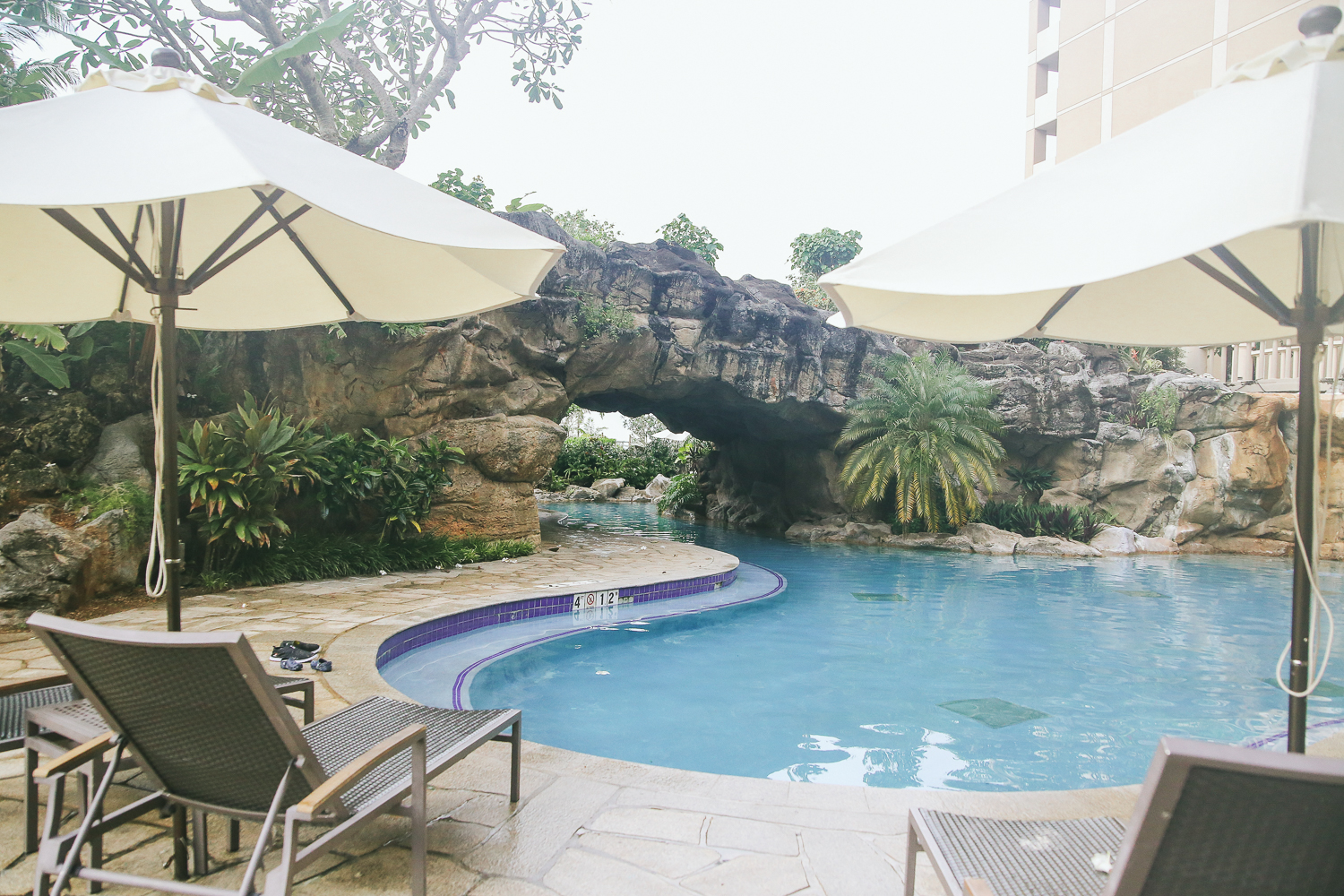 호텔내 풀장이기도 하지만 열대우림에 있는 듯한 느낌이 들 정도로 적당히 자연적인 요소를 병행하여 풀장을 연출하였다. 때문에 적당한 자연 풍경에 어우러짐과 분위기를 느낄 수 있다.