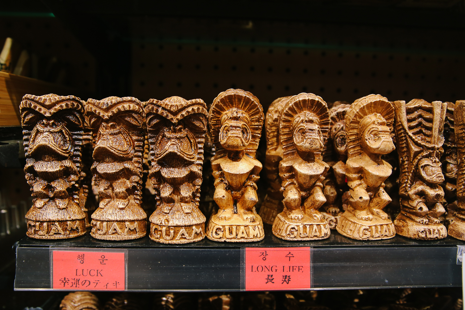 그다음 내가 꽂혔던 기념품. 괌에서 자주 볼 수 있는 조각상이다. 정중앙에 저 조각상 크기는 대략 30cm는 되었다. 저놈들 사진으로 보면 크기가 가늠이 안되지만 일단 키가 크고, 내 손바닥 보다도 큰 녀석이다.