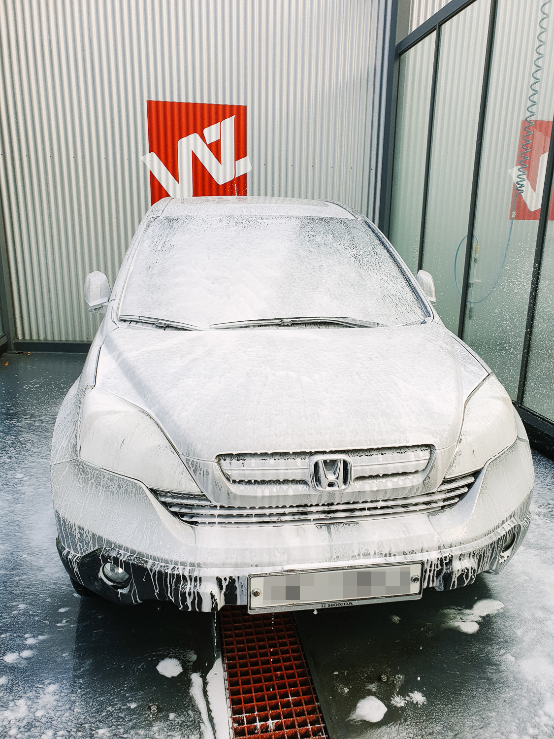 고압세척을 하고 나면 사실 어느정도는 많이 깔끔해지기 때문에, 그다음 스노 폼으로 차량 전체를 둘러주었다. 거품이 조금씩 먹으면서 먼지가 불어 들 무렵, 스펀지를 가지고 열심히 구석구석 닦아준다.