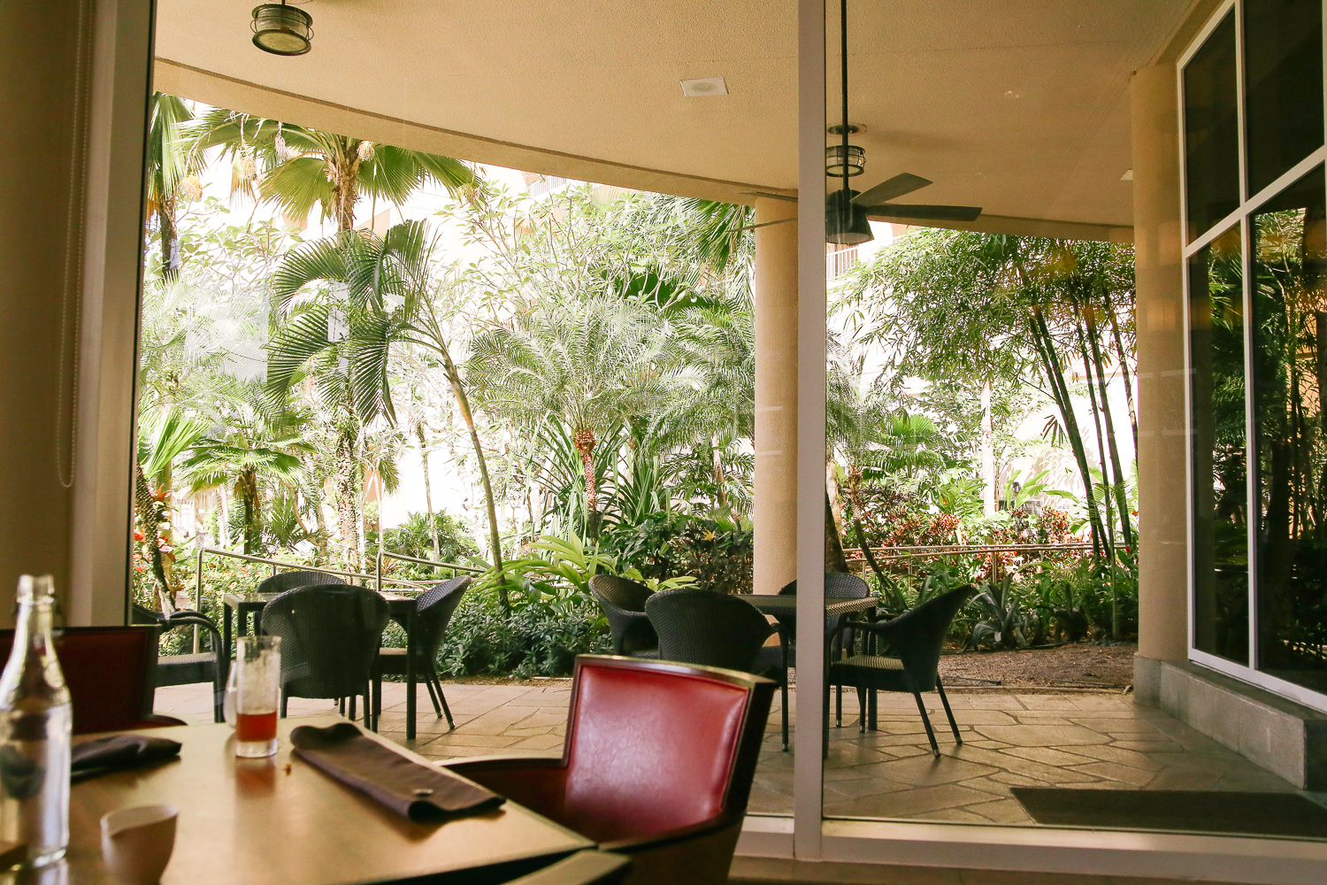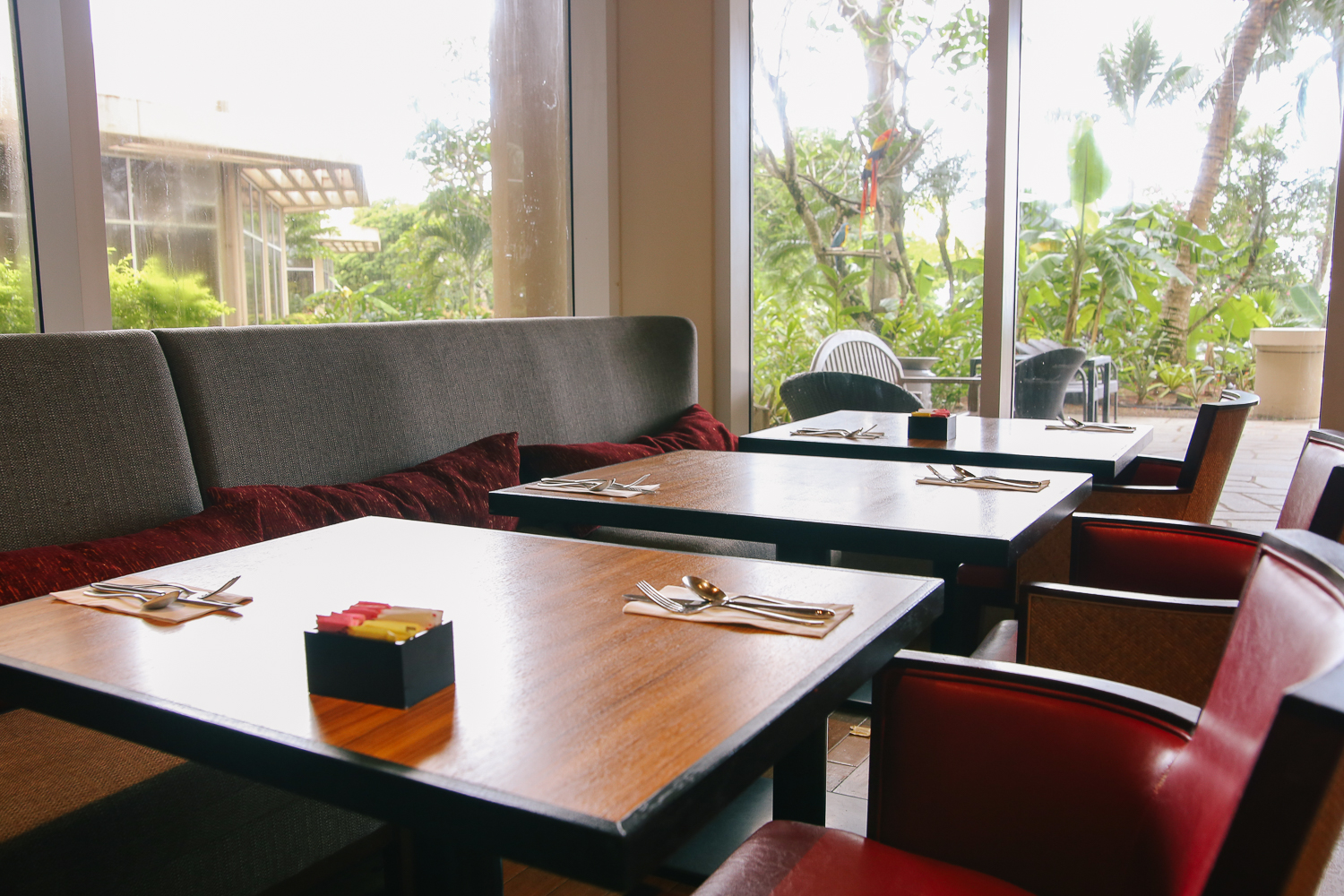 조금은 이른 시간이라 사람이 많지 않았다. 오자마자 직원분께서 테이블을 안내해주신다. 창가에 오션 프런트가 보이는데 그곳 나무에 앵무새가 있는 것을 볼 수 있었다.