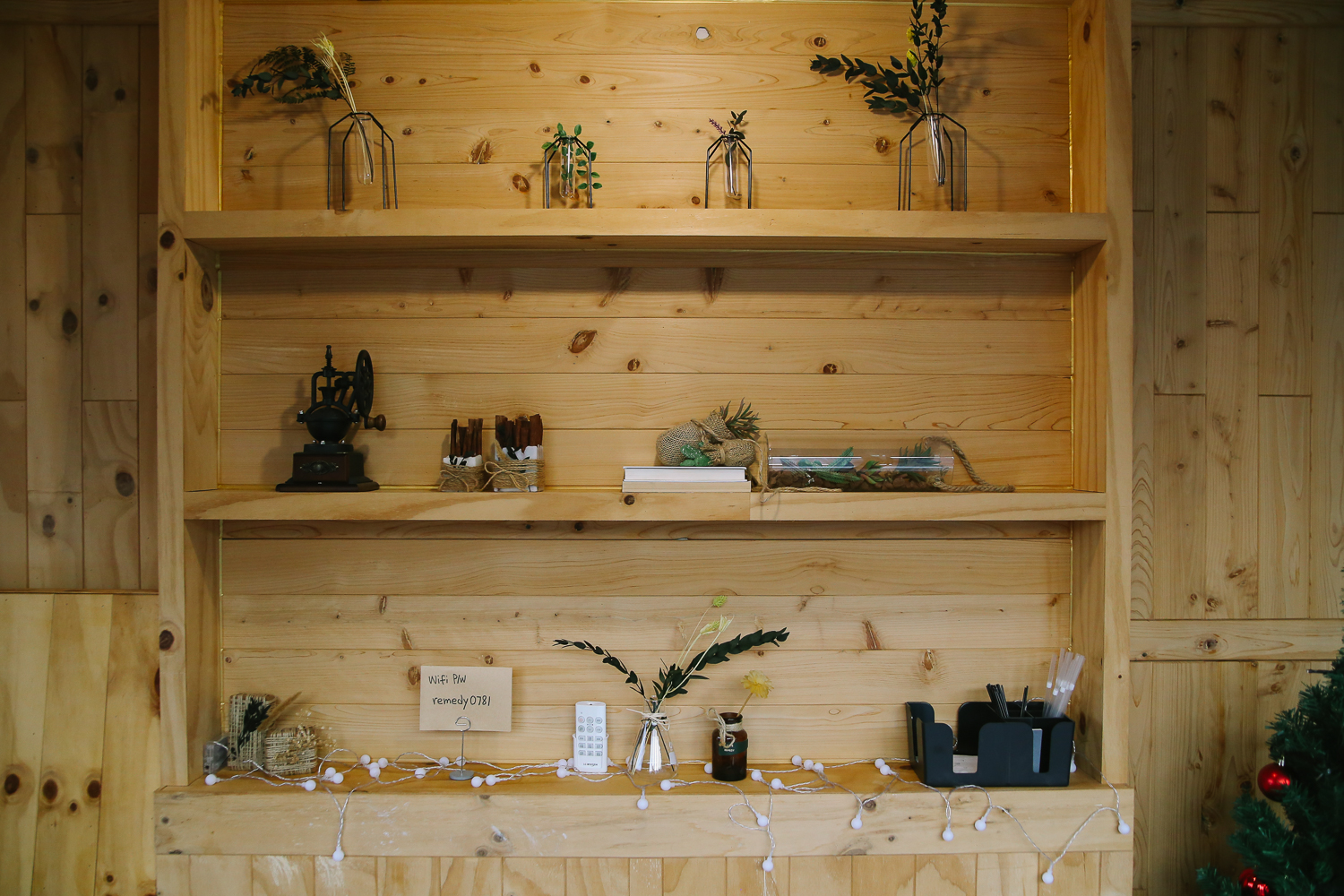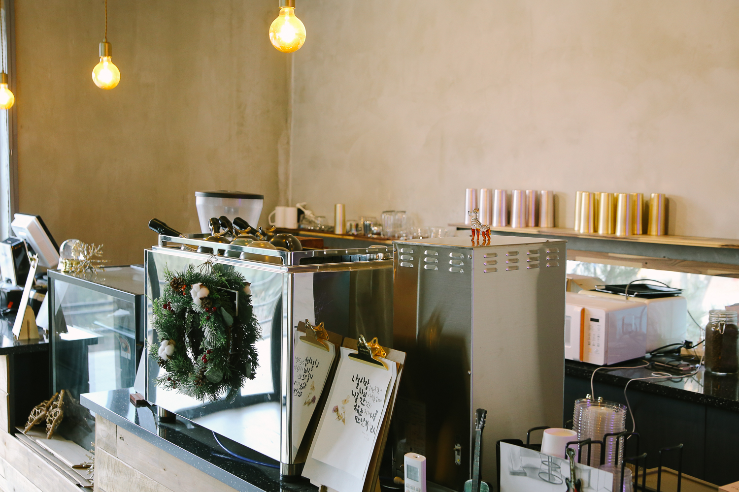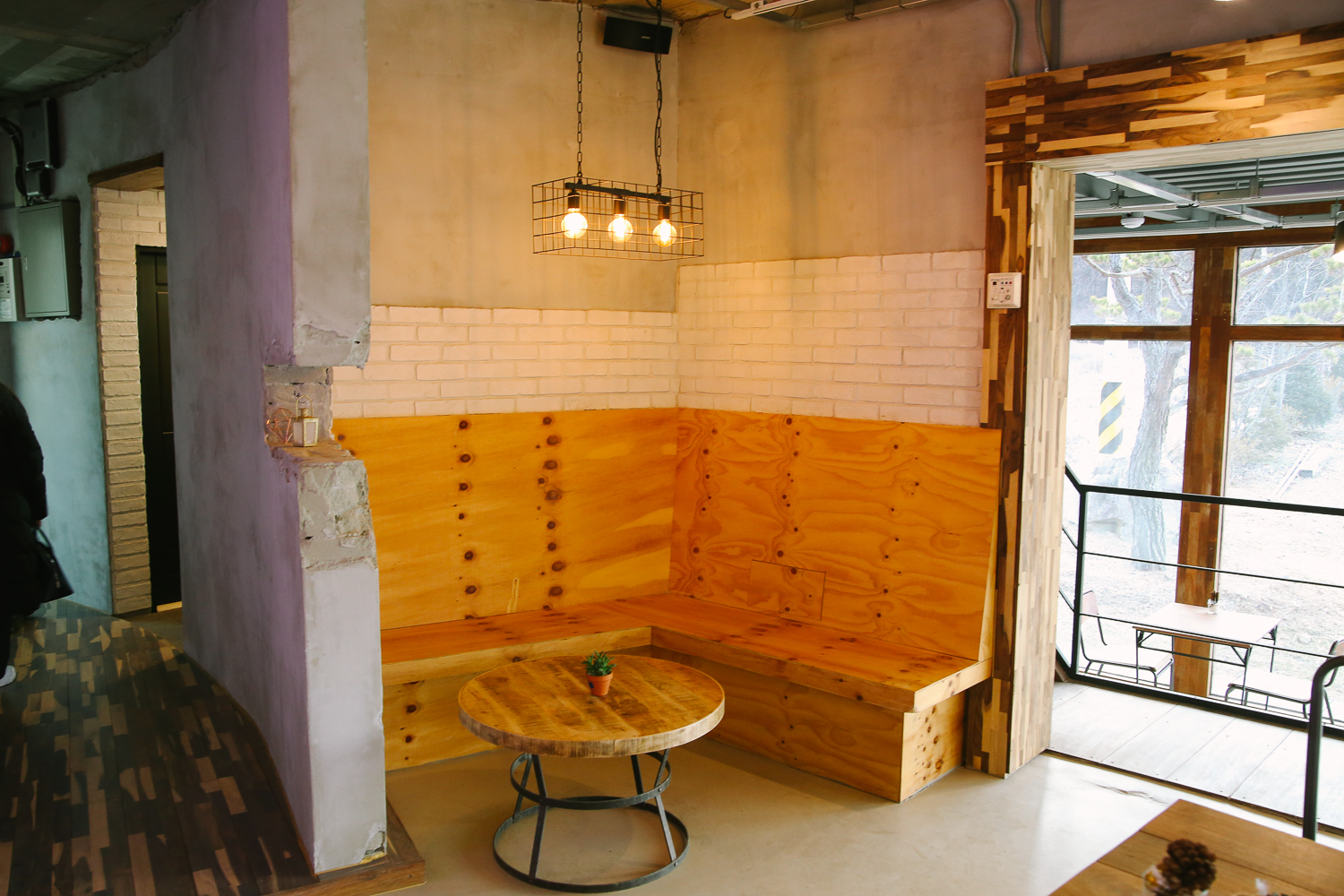 카페는 노출 벽면으로 되어 있으며 중간 타일과 원목으로 마감한 모습이다. 카페는 비교적 온기가 있었으며, 원목을 활용한 인테리어 덕인지 나무향이 은은하게 풍겨서 너무 좋았다.