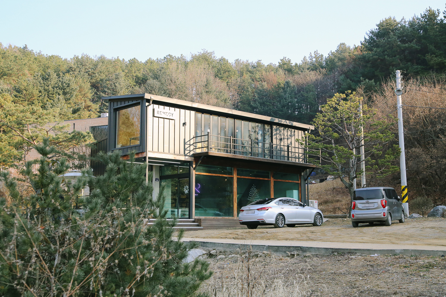 오늘은 특별한 일정이 없어서 오랜만에 아내와 양평 쪽으로 데이트를 갔다. 양평 카페에 웬만큼 이름 있는 곳은 다 방문한 우리이기에 규모가 작더라도 우리 취향에 맞다면 새로운 카페를 개척하고 있다. 오늘 방문한 레메디 카페 역시 처음 가보는 곳으로 생긴 지 얼마 안 된 곳 같다. 카페 외형은 패널로 심플하게 되어 있었다.