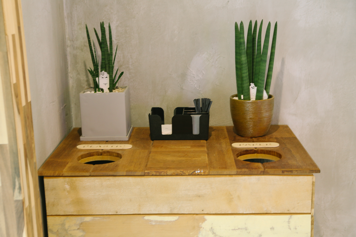 이곳은 1층 카운터 방향으로 향한 테이블이다. 벽면 뒤쪽으로 돌아가면 남, 여 화장실이 각각 있다.