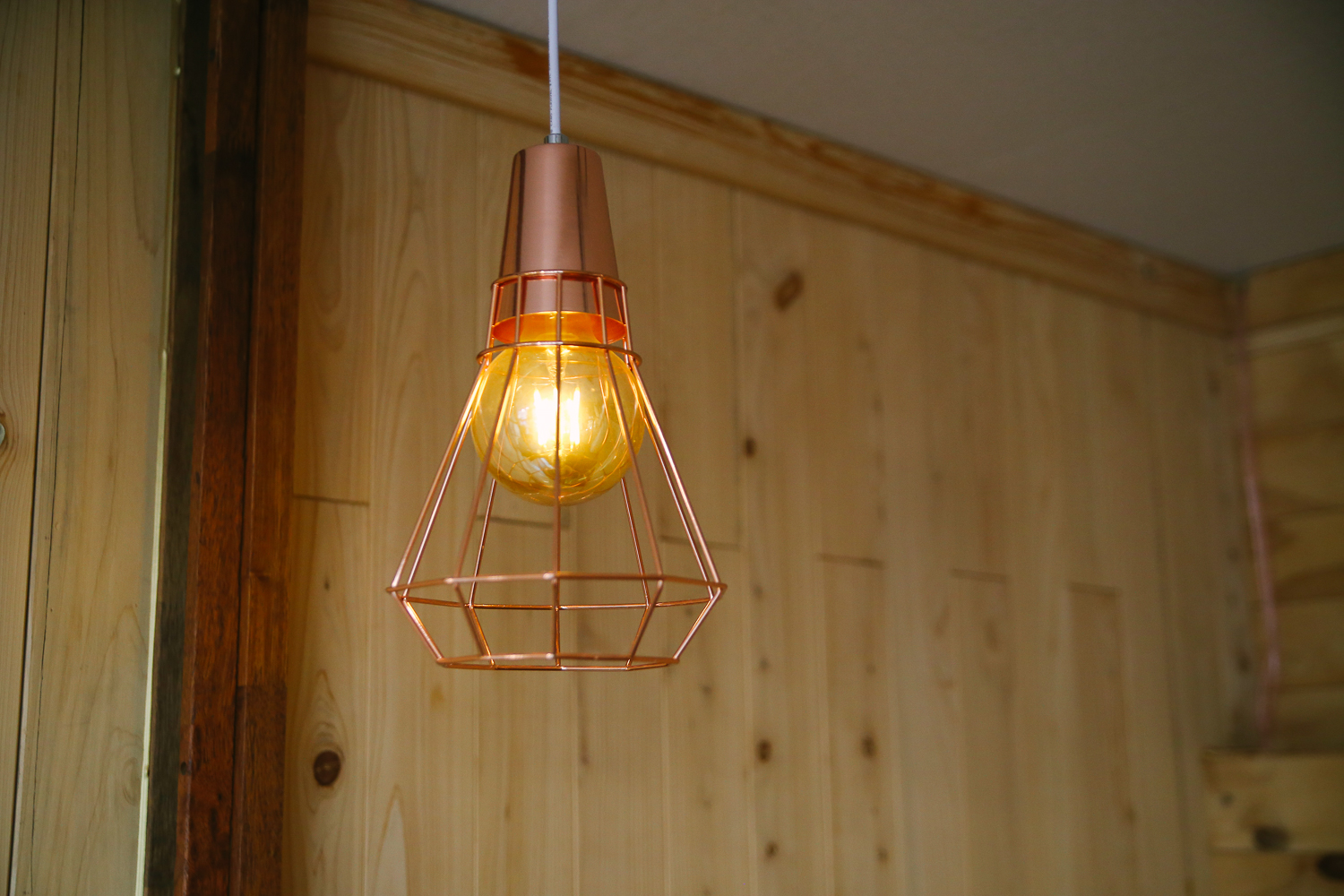 빈티지함을 더하는 카운터 쪽 조명 전구.