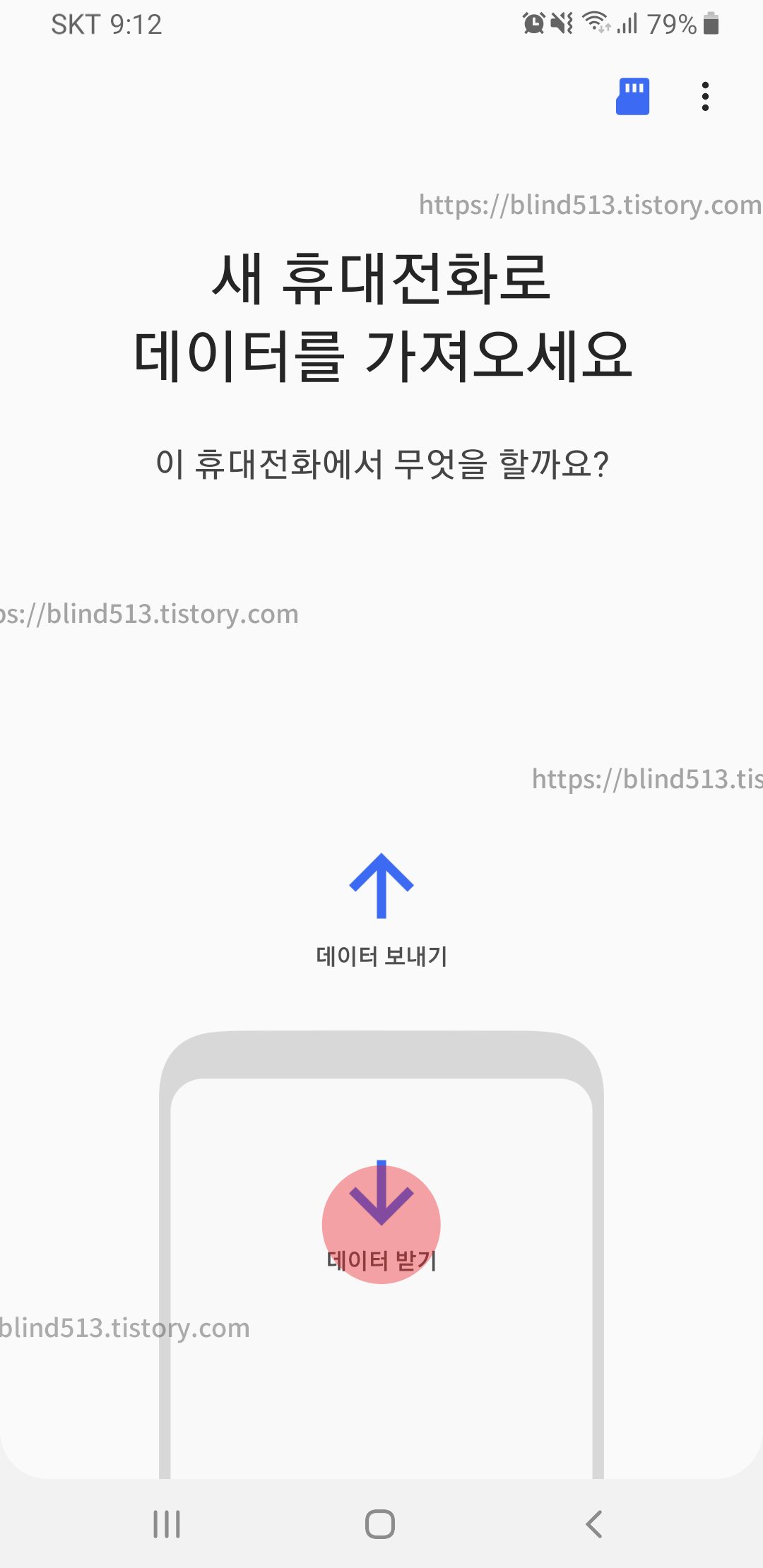 구 휴대폰에서 동일한 Smart Switch 어플 실행하여 데이터 보내기를 설정해 놓고, 신규 휴대폰에서는 데이터 받기를 클릭하면 근접해 있는 디바이스를 검색하게 된다. 그럼 검색된 디바이스가 보이게 되고, 품번을 확인하여 본인 휴대폰이 맞을 시 클릭하게 되면 자동적으로 데이터를 전송 및 내려받게 된다.