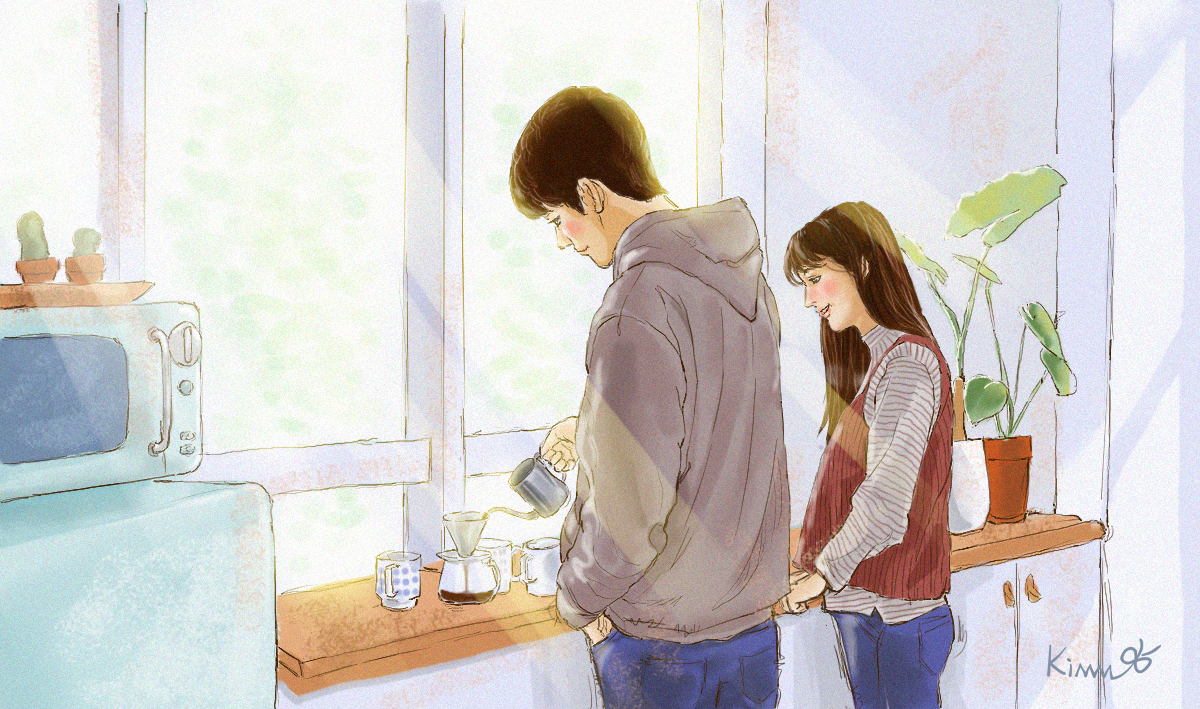 여느 때와 다름없이 그녀가 좋아하는 커피를 내려준다.