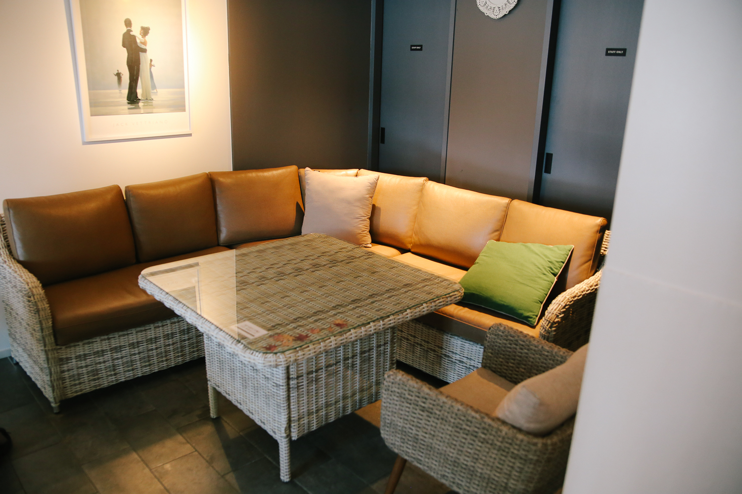아내가 마음에 들어했던 그림 액자. 다양한 인원을 수용할 수 있는 테이블이 많았다. 추운 계절에는 카페 내 창가 쪽 자리가 상석이고, 날이 좋은 때는 바깥쪽 테이블이 좋은 것 같다.