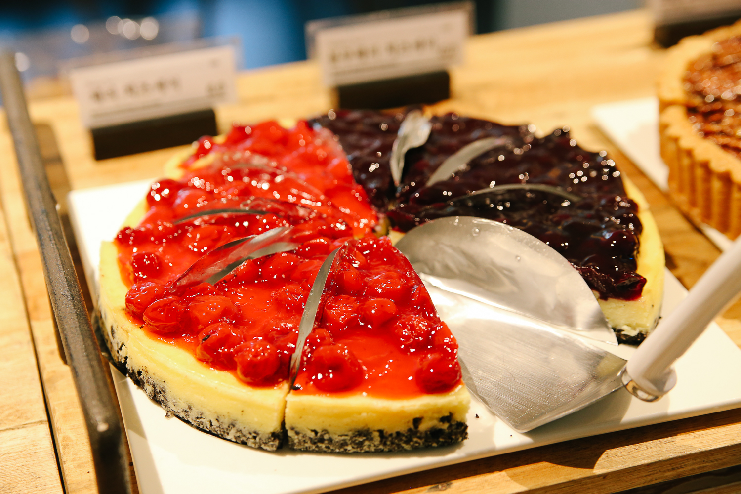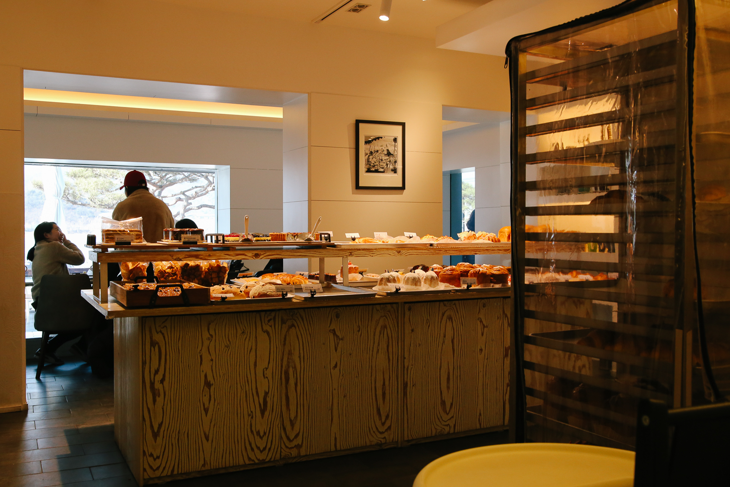 창가 쪽 기준으로 많은 테이블이 있지만 이미 만석이라 안쪽에 한산한 테이블에 자리했다. 카운터 및 중앙 쪽에는 쉽게 지나칠 수 없는 맛있어 보이는 빵들이 많았다.