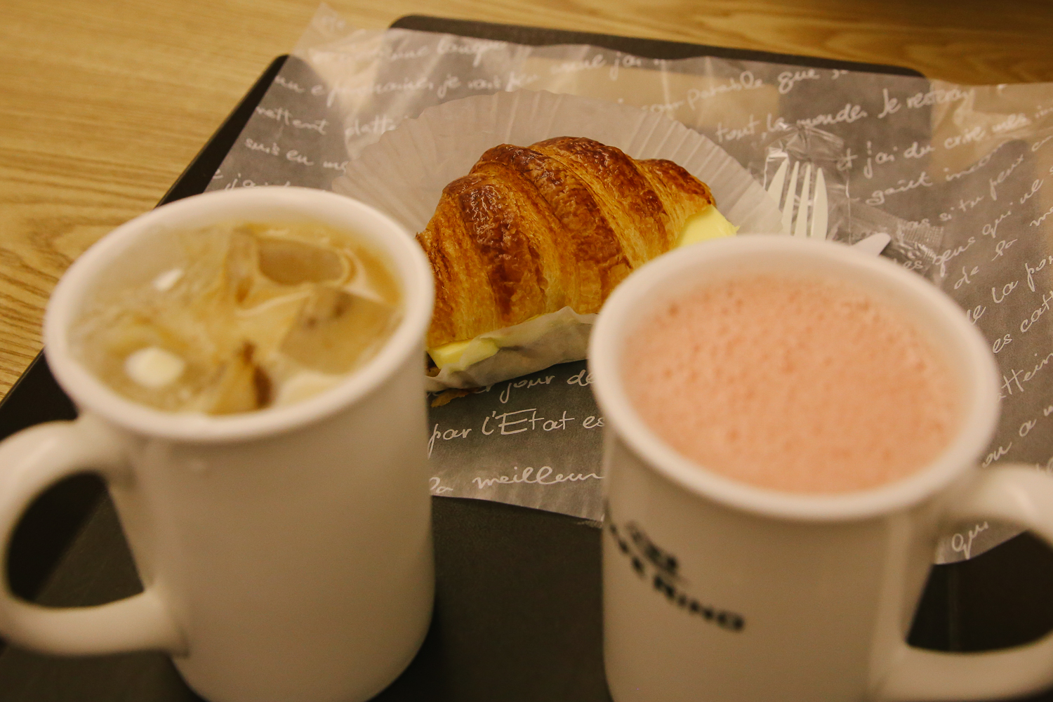 우리는 그 중 앙버터 크루아상(6,500원)을 구매했고, 바닐라라테(8,000원), 딸기 바나나 주스(9,000원)를 시켰다.