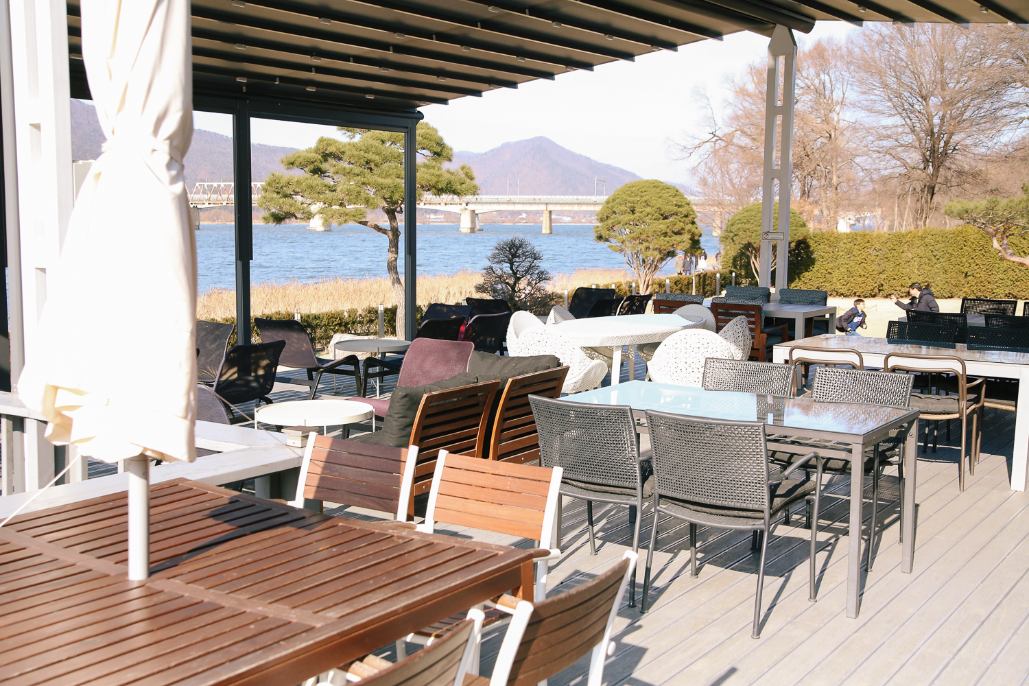 북한강 뷰를 감상할 수 있도록 통유리 구조와 전체적으로 깔끔한 인테리어였다.