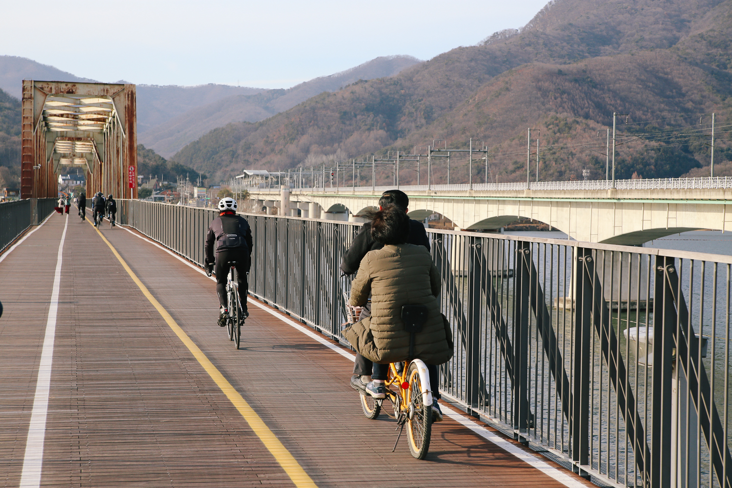 산책로를 따라 걷다보면 저 멀리 경의 중앙선 열차가 지나가는 다리를 볼 수 있다. 가까운 역을 보니 운길산역이었다. 대중교통을 이용하는 분들이라면 산책로에서부터 걸어오다가 카페에 방문하는 것도 좋을 것 같았다.