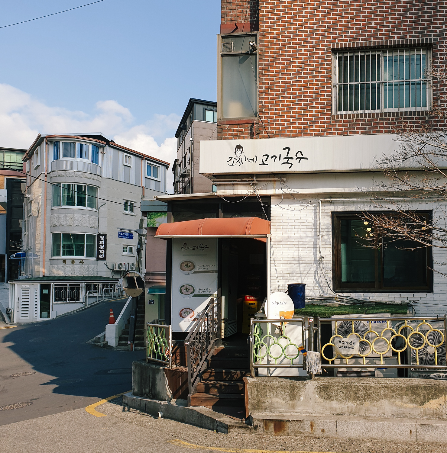 2주 전쯤인가, 회사에서 한 달에 한 번씩 하는 맛집 투어 때는 내가 당첨되어 찾게 되었던 맛집! 왕십리역 근방에 위치한 조씨게국수. 일반 맛집 골목 쪽에 위치해있지 않아서 찾아갈 때 음식점이 있을까라는 생각을 하게 된다. 골목길로 들어서기 전 볼 수 있는 조씨네 국수.