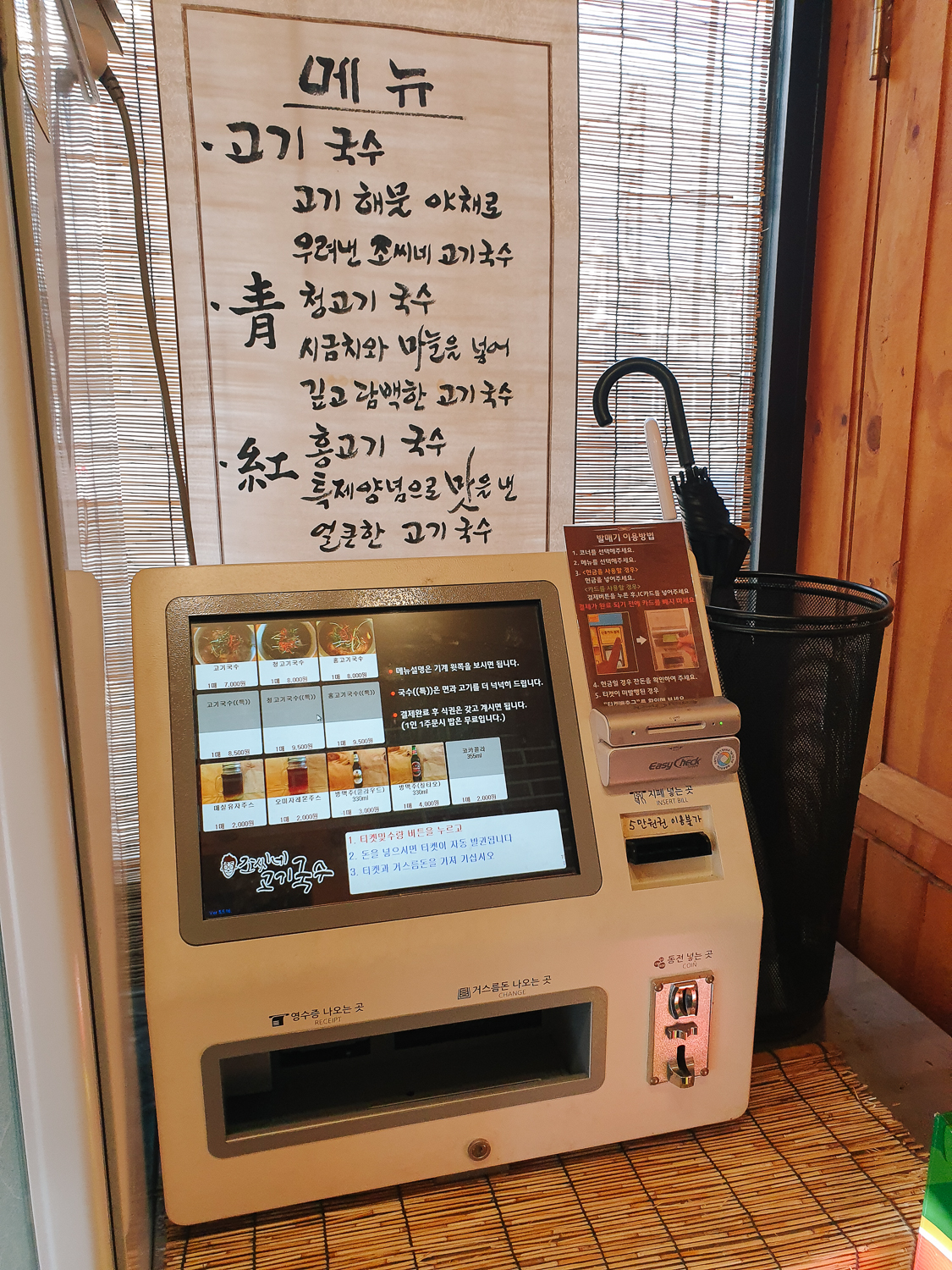 출입구 위치한 기계로 미리 선주문을 하고 입장하면 된다. 홀을 기준으로 ㄷ자 모양의 테이블이 있다. 마주 앉는 자리가 없다 보니 혼밥을 즐기는 사람들도 부담 없이 앉을 수 있었다.