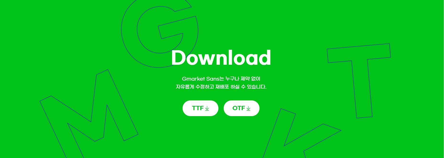 일단 하단의 배너 클릭시 Gmarket Sans 을 다운로드할 수 있다.