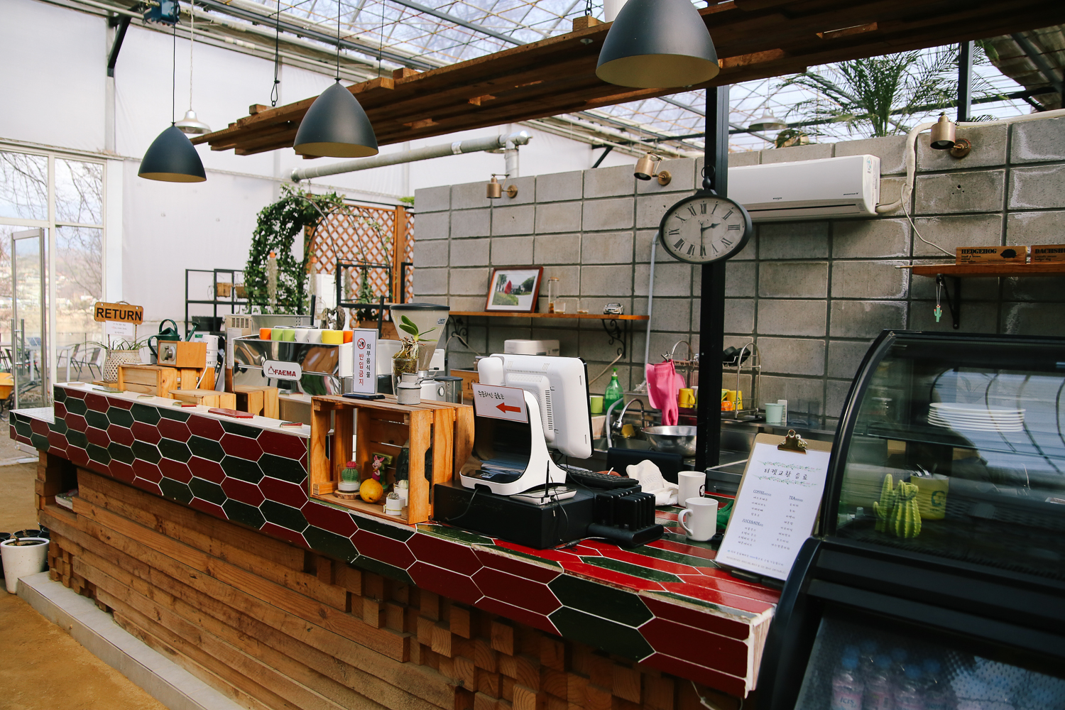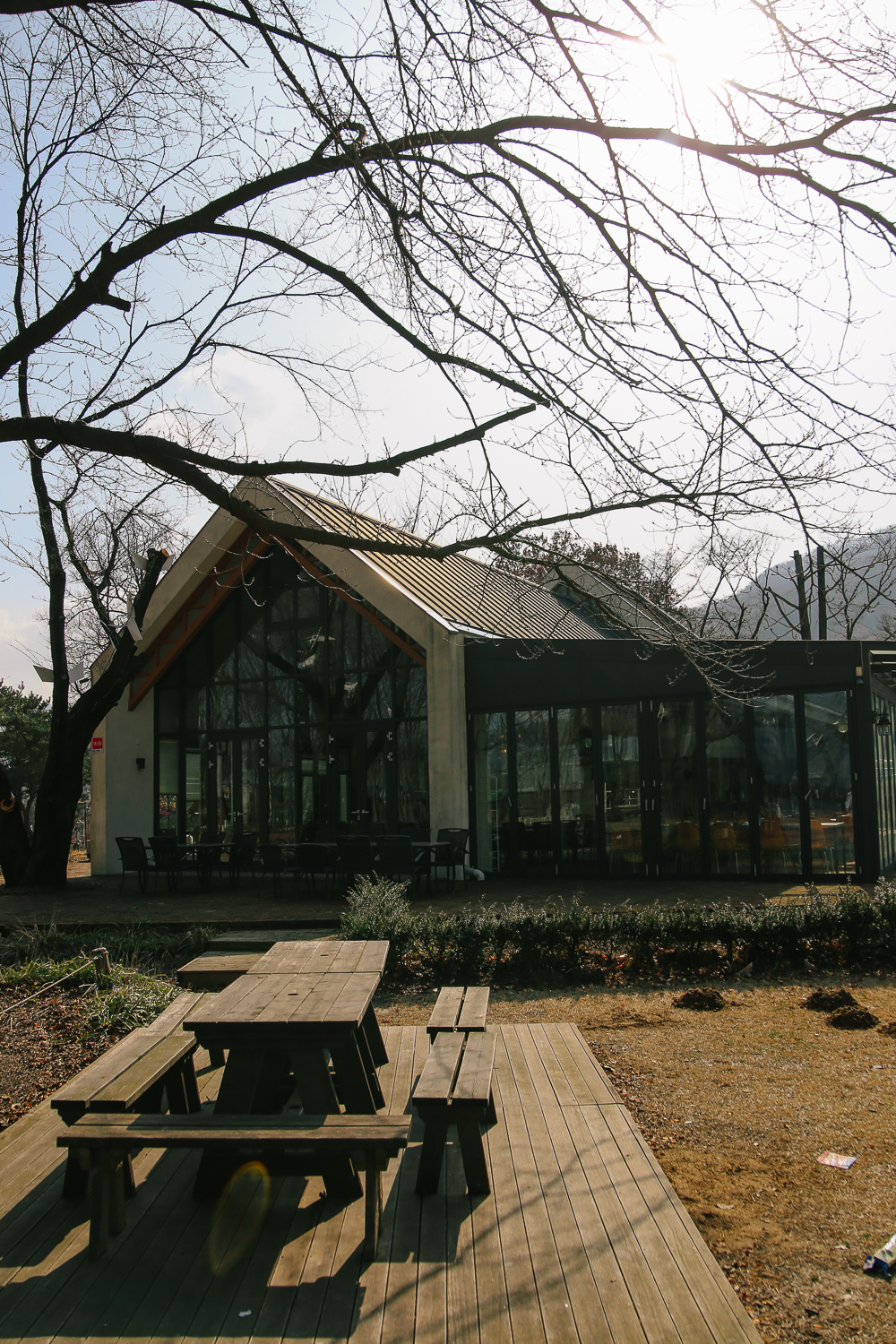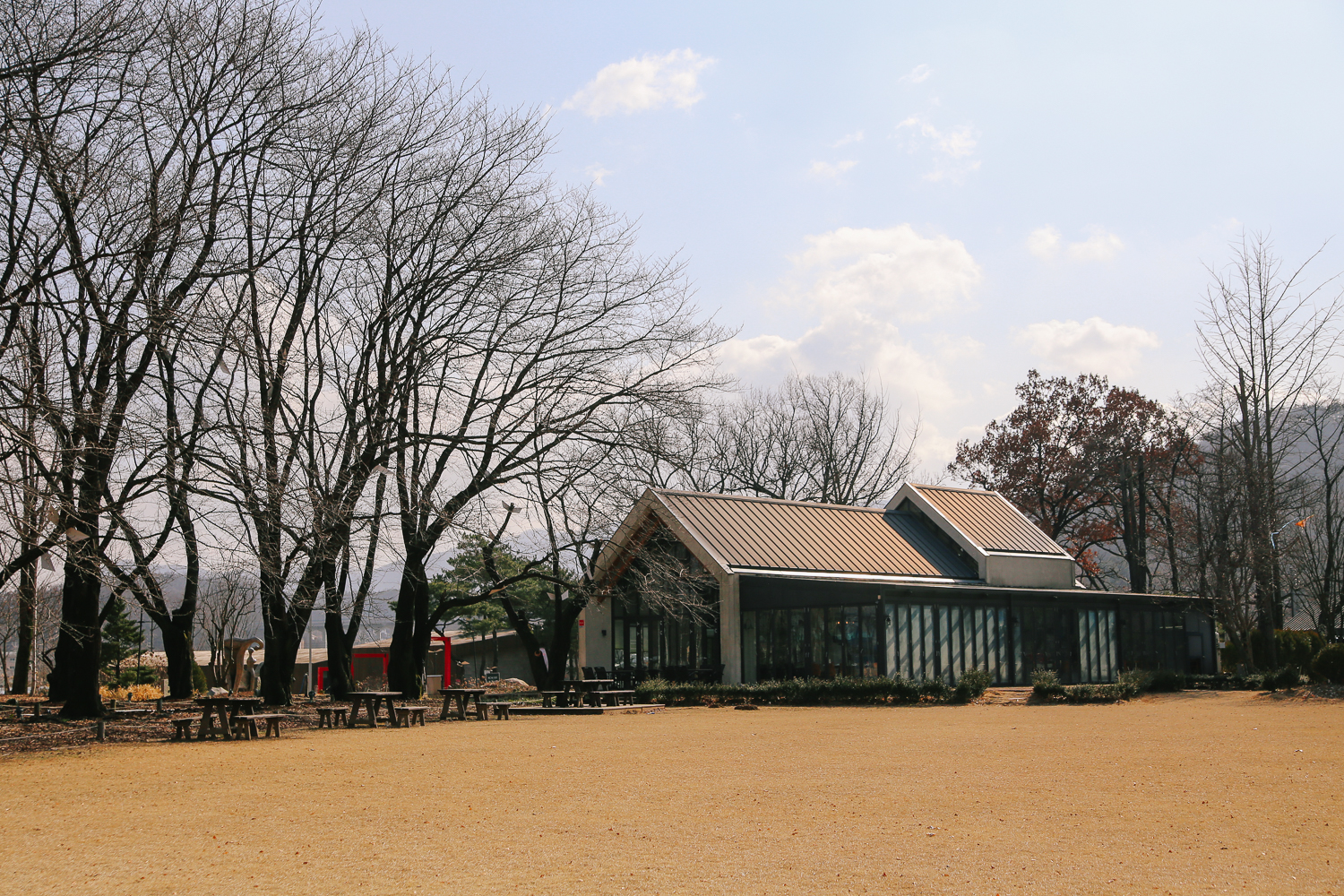 중간중간 새싹들이 자라나는 식물도 보였다. 소나무 말고 오랜만에 만나는 푸른 빛 자연! 넓은 정원을 여기저기 둘러보고 다시금 카페 안으로 들어간다. 역시 이곳이 제일 따뜻하고 포근한 공간이다.