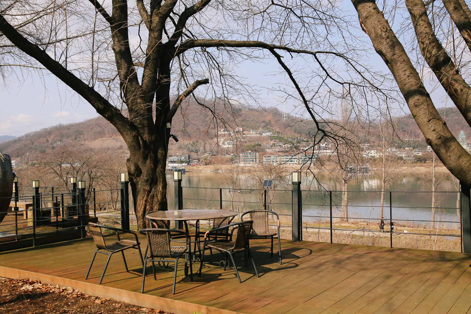 카페 바로 앞쪽에 위치한 정원 테이블. 이곳도 강이 보이기 때문에 꽤나 운치있는 풍경을 자랑한다.