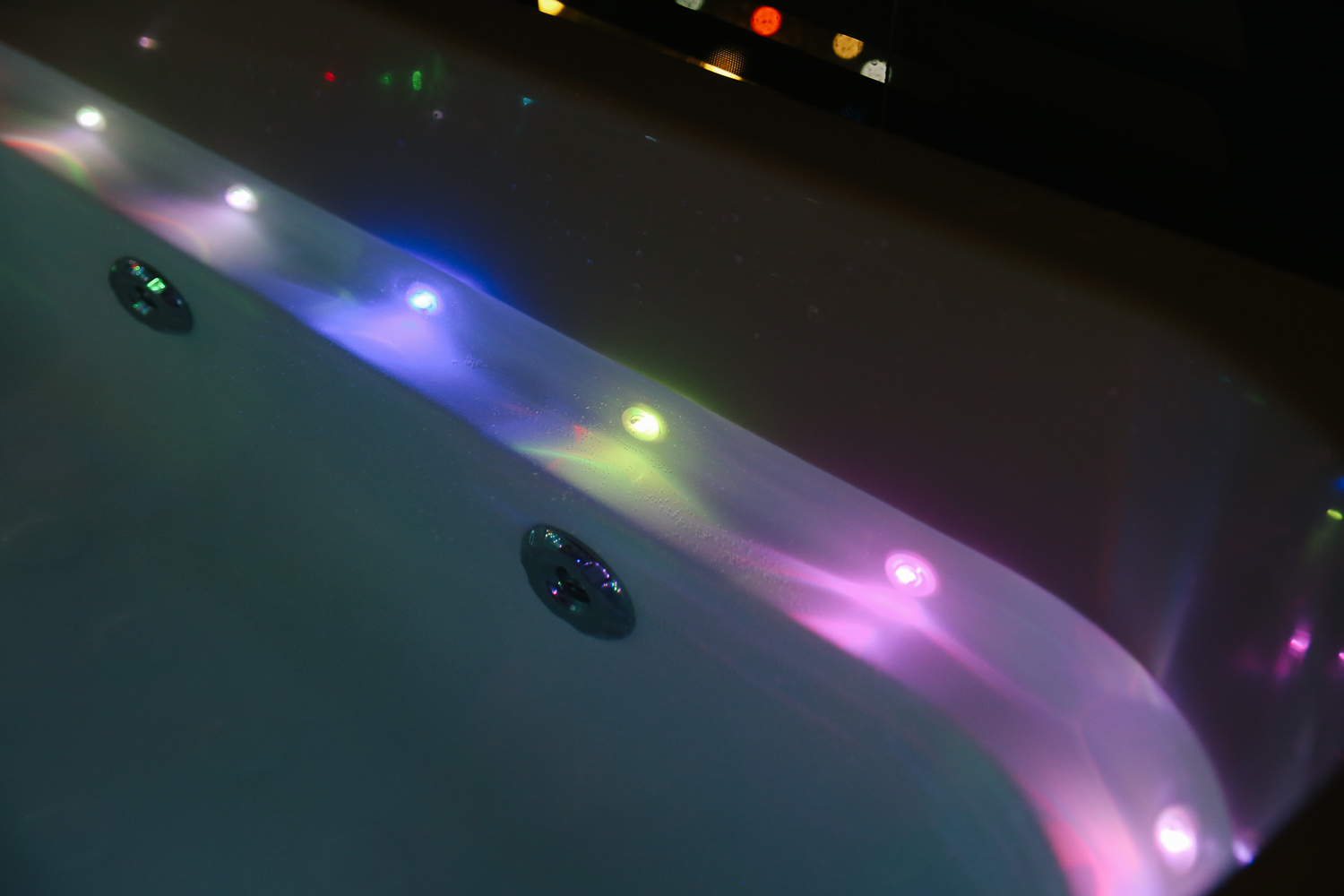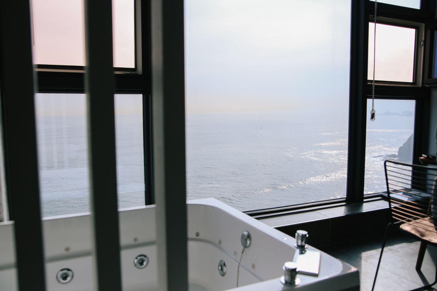 스파 욕조가 통유리 창문에 위치해 있기 때문에 바닷가 뷰를 보면서 감상하기 좋다. 스파 욕조를 사용시 소음이 발생할 수 있기 때문에 저녁 9시까지 사용을 권장하고 있다.