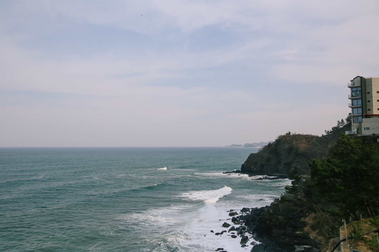 이곳이 바로 창문에서 바라본 오션 뷰이다. 아까 위에서 말했듯이 먼발치에 있는 해변가가 있는 것이 아니고 바닷가 쪽 절벽 고지대에 위치하여 내려다보는 보라고 할 수 있다. 그렇기 때문에 모래사장을 보기 어려우며, 산책하듯이 해변가를 걷는 것은 어렵다. 근처 해수욕장은 차량으로 5-10분 거리에 두 군데가 있으니 놀러 온 김에 해변가를 둘러보고 오는 것도 추천한다.