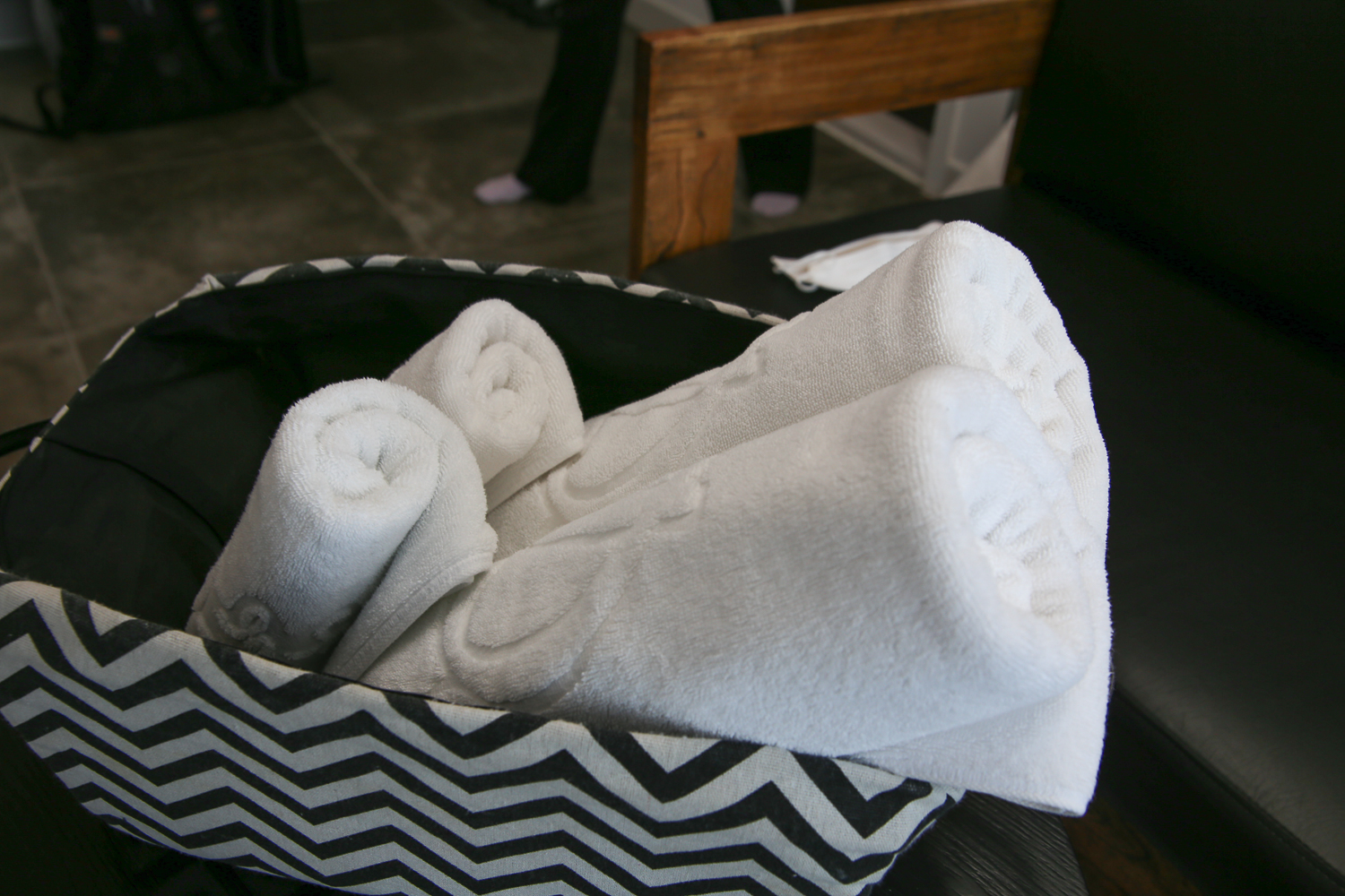 인테리어는 전체적으로 화이트 톤에 포인트 컬러로 짙은 그레이를 썼다. 우리 집도 그렇고 요새는 그레이와 화이트 톤은 무난하고 깔끔해서 많이들 이용하는 인테리어 컬러인 것 같다. 바닥은 스파가 있어서인지 대리석은 아니지만 덜 미끄러운 부드러운 돌 타일로 마감되어 있었다. 젖은 상태에서 돌아다닐 수 있기 때문에 청소하기 용이하기 위해서라 추측해본다. 아무튼 전반적인 인테리어 색상과도 잘 매칭 되는 모습이다.