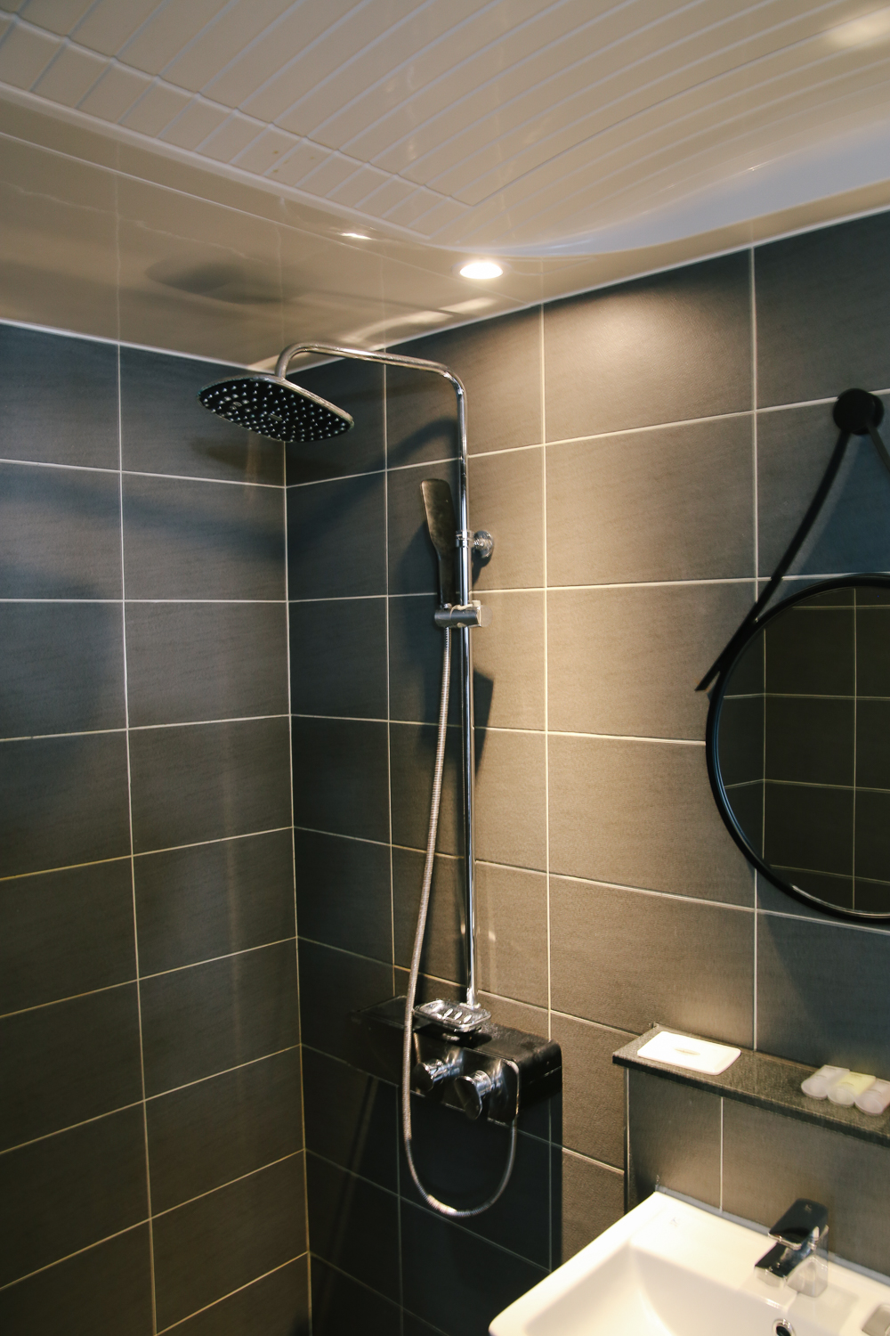 화장실도 짙은 그레이 타일로 마감되어 있으며 딱 필요한 공간만으로만 이루어져있다. 무엇보다 싱크대나 화장실 수도에 뜨거운 물이 엄청 잘 나온다. 온수가 콸콸 뜨겁게 잘 나오기 때문에 살살 돌리면서 쓰기를 권장한다. 나도 손바닥 살짝 데었다. ㅎㅎ 수압도 좋고, 온수도 잘 나오고 오션뷰를 즐기며 스파를 즐기기에 정말 좋은 곳이다. 예약한 방은 직접 직원분께서 친절히 안내하여 응대해주시며, 관련 시설에 따른 유의사항과 사용 등을 차분히 알려주신다.