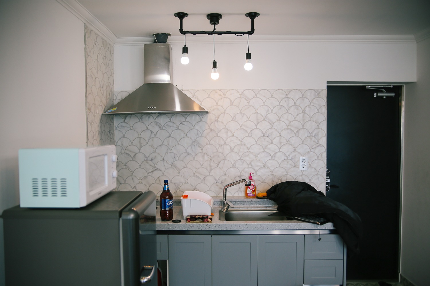 조금은 아담한 냉장고. 우리는 양도 적고, 입이 짧아서 냉장도고 여유롭게 사용하였다. 아참, 바로 옆에 마트가 있는데 코로나 영향인지 거의 영업을 안 한다고 한다. 그래서 도보로 갈 수 있는 편의점이나 마트는 없고, 차량으로 이동해야 하는 번거로움이 조금 아쉬웠다. 물론 바로 옆 건물 마트가 영업을 한다면 모든 게 해결!