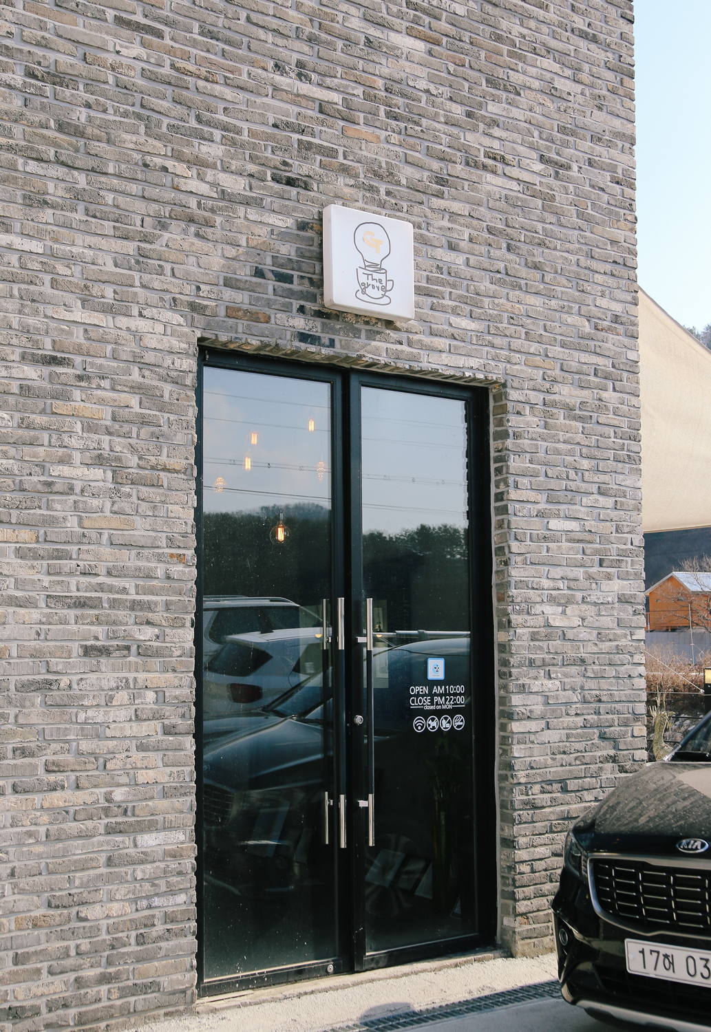 원래 방문하려던 카페에 갔지만 생각보다 너무 작아서 오는 길에 예뻐서 봐 뒀던 카페가 있었는데 그곳이 바로 이곳 더그로브이다. 정문 쪽에 주차장이 있는데 대략 6~7대 정도 수용할 수 있는 공간이었다.