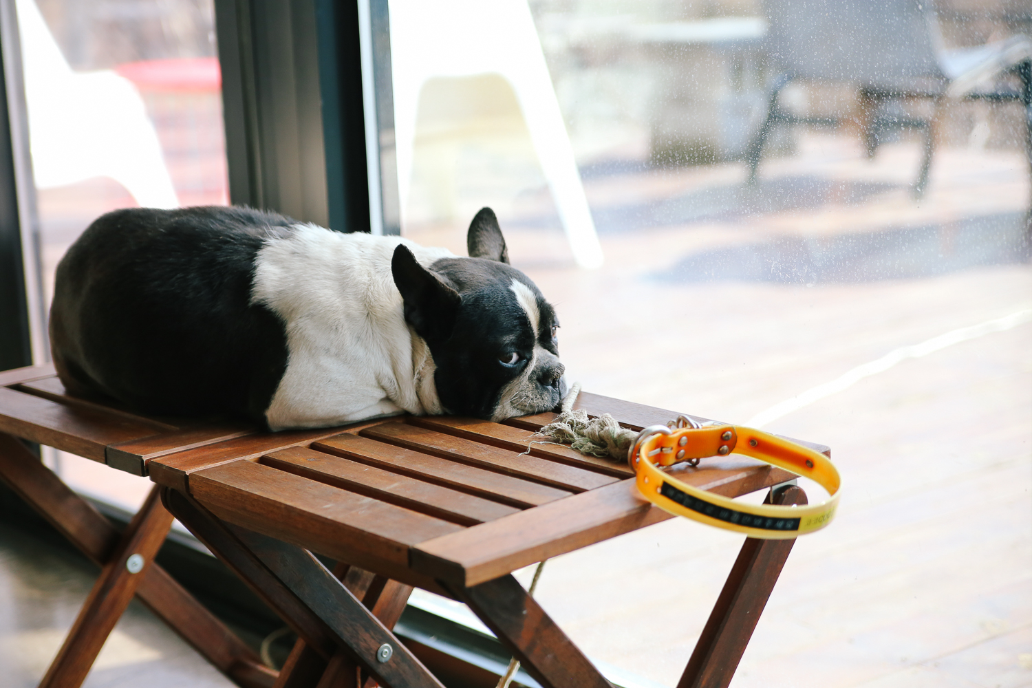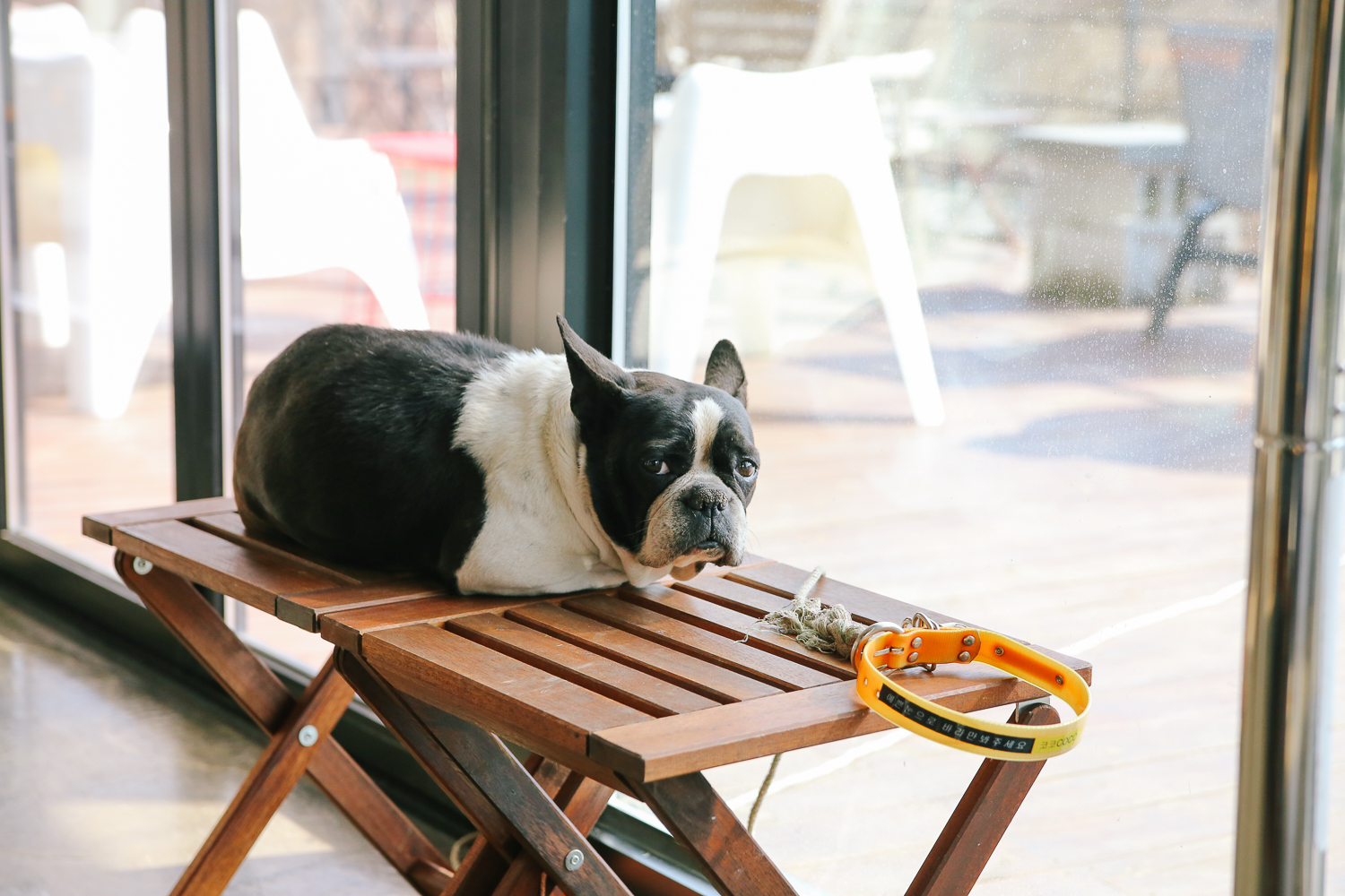 그리고 혼자서 시무룩해 앉아있는 댕댕이가 있다. 코로나 영향으로 따로 만지진 말아달라고 당부한 상태. 녀석은 우리가 갈 때까지 저기서 방향을 여기저기 바꿔가며 쉬었다.