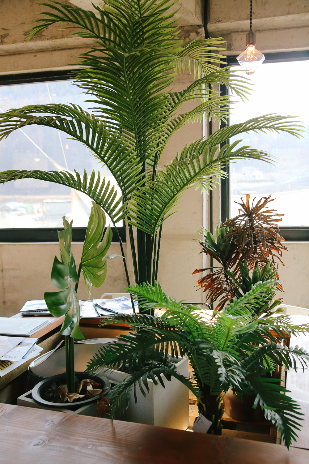 채광도 좋고 창밖으로 보이는 풍경과 플랜테리어를 활용한 예쁜 인테리어가 돋보였다. 안쪽에 제일 예쁜 자리에 한 커플이 앉아있어서 그곳은 사진에 못 담았고 아쉬운대로 다른 곳을 찍었다. 개인적으로 그 커플이 앉아있던 자리가 2층에선 제일 예뻤다.