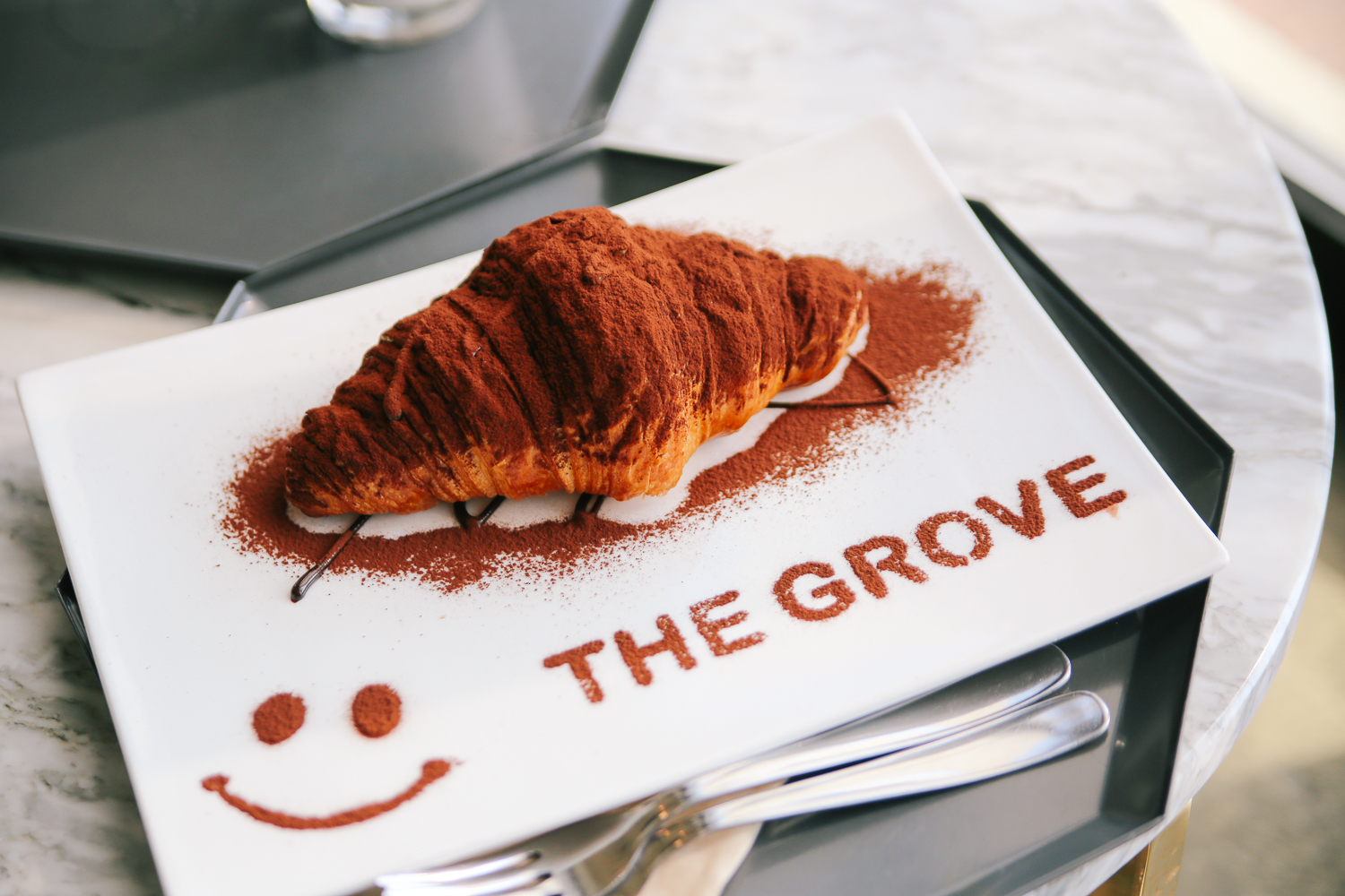 배고파서 시켜먹었던 초코 크로아상. 맛있었다 :) 귀엽게 표정과 카페 이름을 새겨준 모습이다.ㅎㅎ