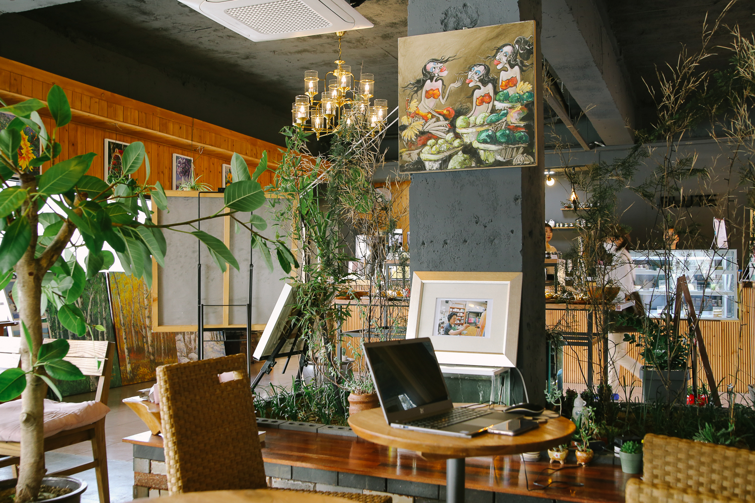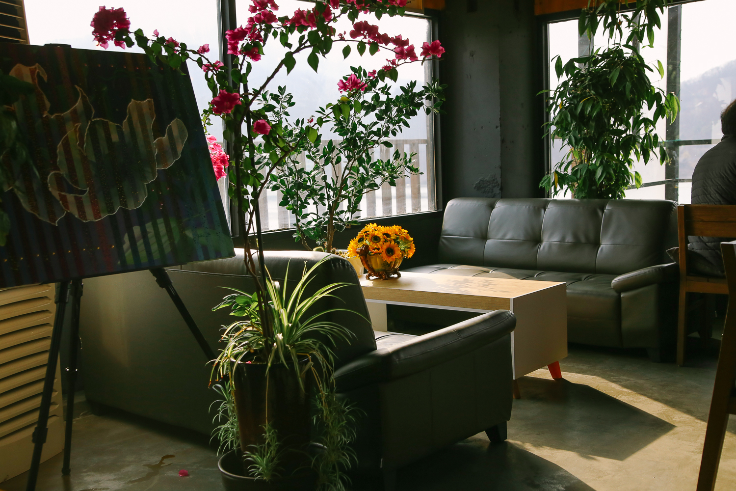 화분도 적절히 활용하여 공간도 꽉 차고 알차게 꾸며놓은 모습이다. 오며 가며 지나쳤던 카페여서 그렇지 꽤 괜찮은 카페였다. 아쉬운 것은 우리가 좋아하는 정원이 없는 카페라,,, 자주 방문할 곳은 아니긴 했다.
