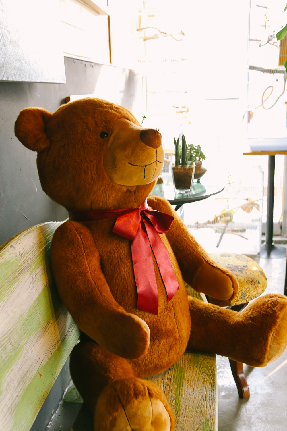 아내가 좋아했던 큰 곰인형. 우리가 앉았던 테이블 바로 옆에 있었다.ㅎㅎ