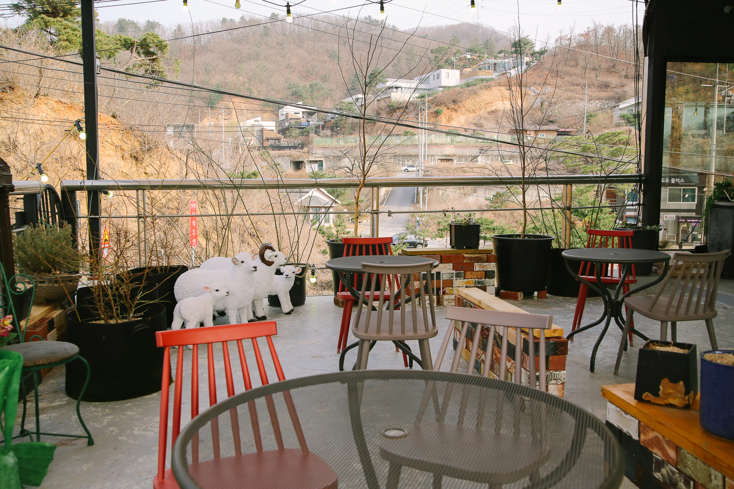 이곳이 발코니 쪽 테이블. 좌측에 뽕짝을 크게 틀어놓은 어르신... 카페 감성 가득한 팝송이 흘러나오는데 왜 방해하시는지 ..ㅠㅠ