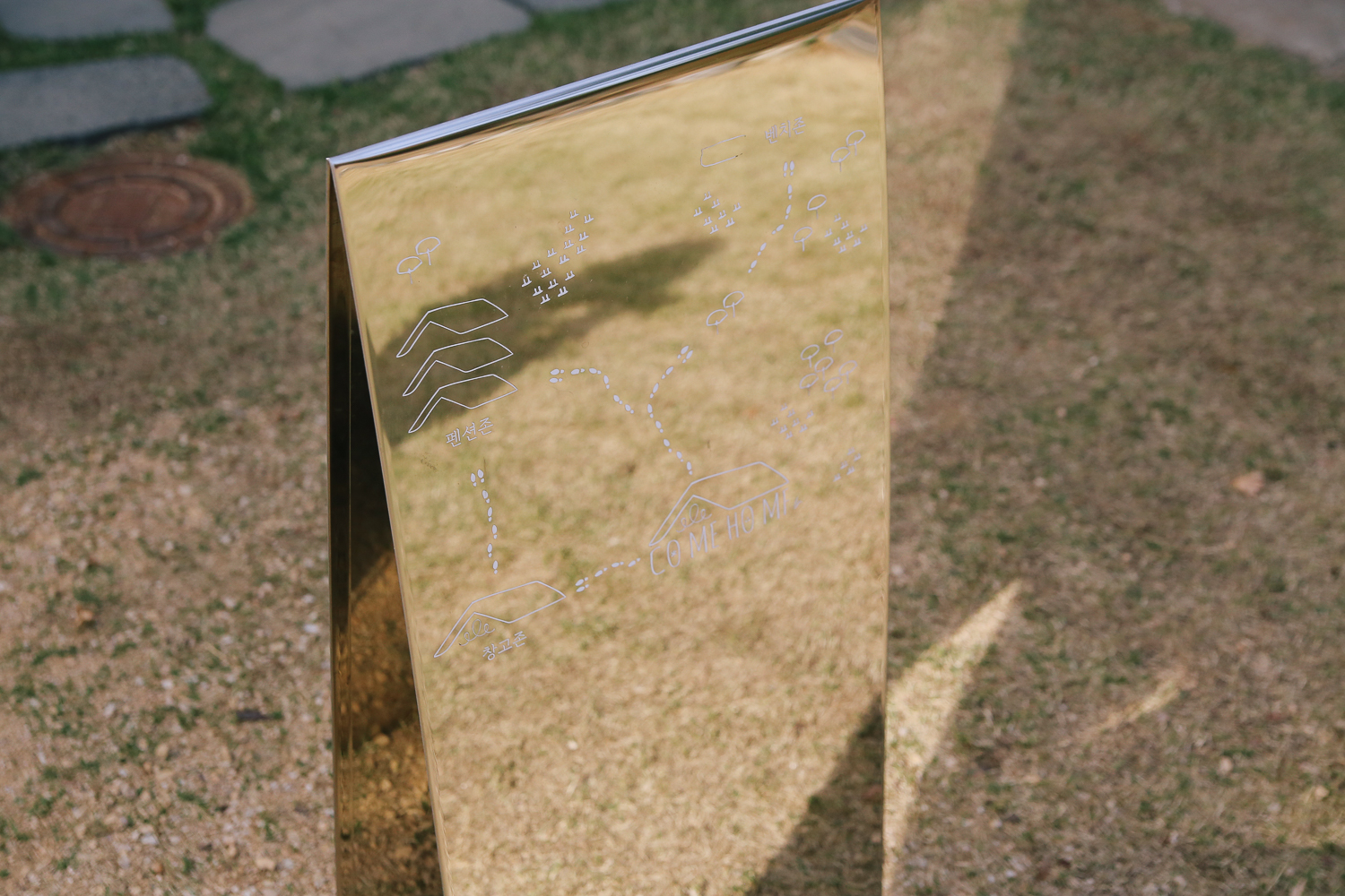 이곳은 코미호미의 정원의 지도가 그려져 있는 입간판이다. 메탈로 되어 풍경이 반사되어 묘하게 매력적인 모습.