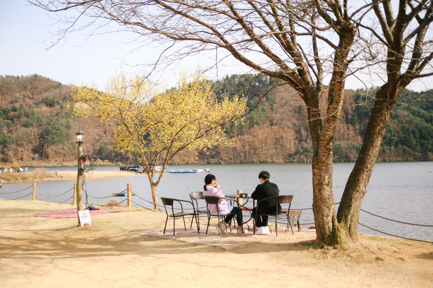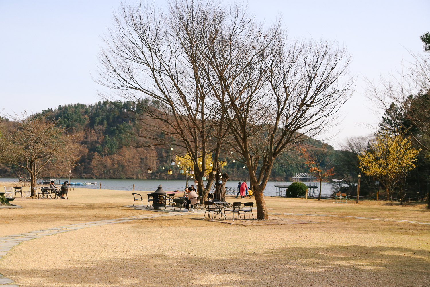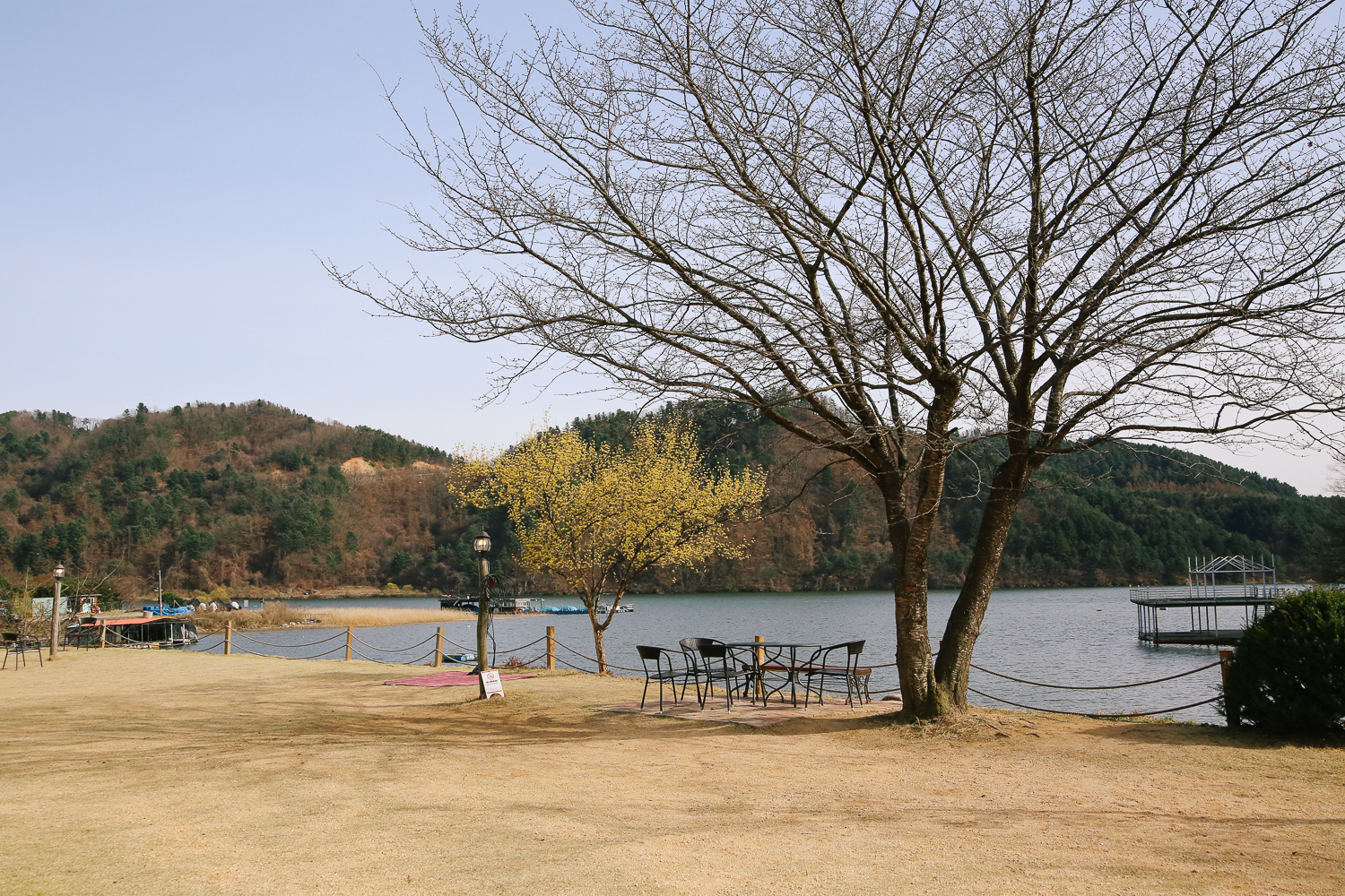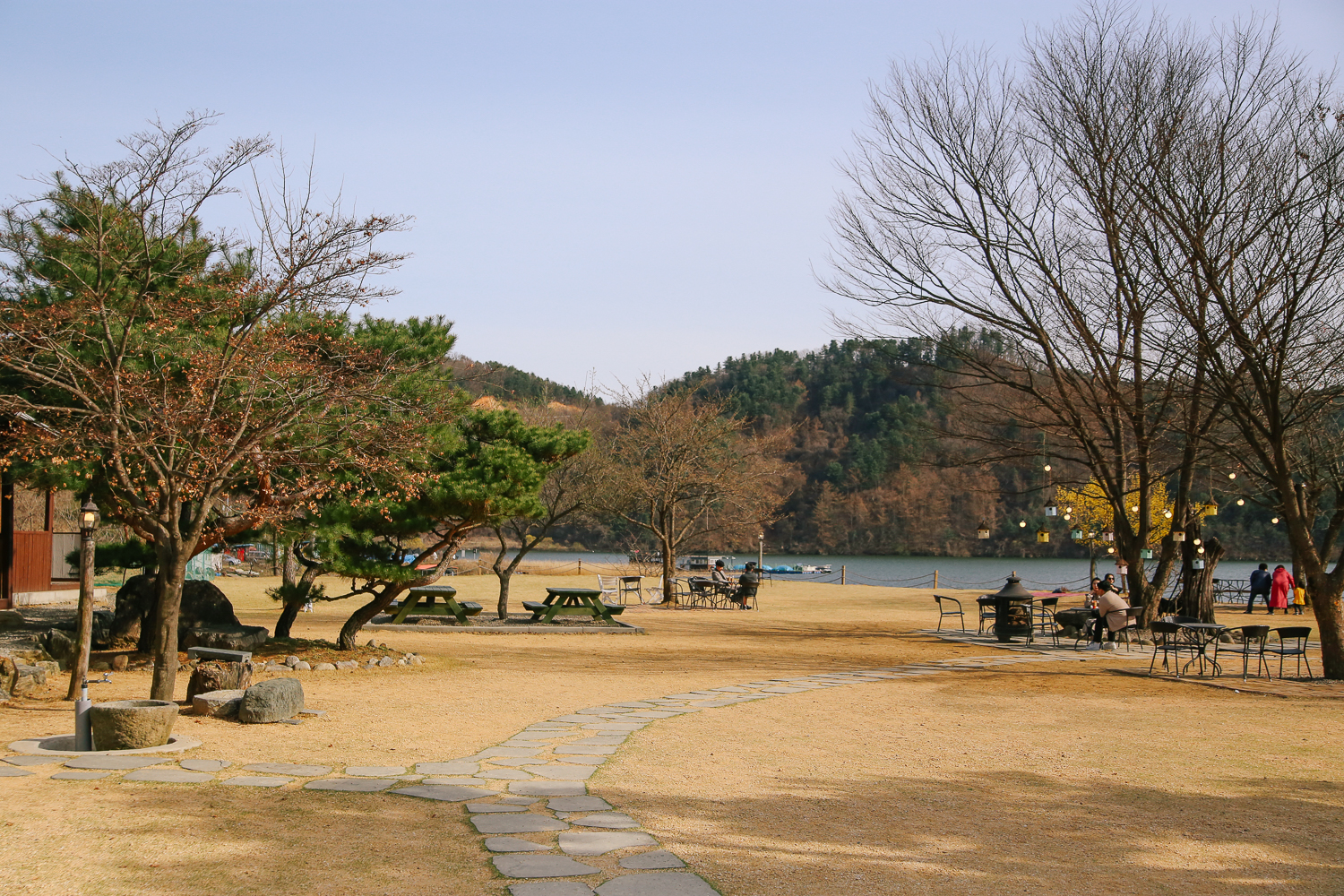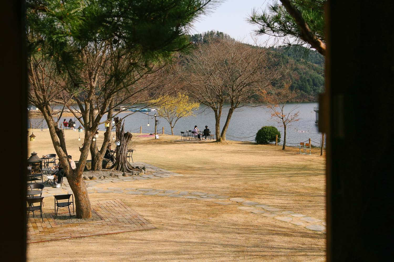 정원은 바깥쪽으로 쭈욱 둘러보면 테이블이 드문드문 있어 그곳에 자리하여 북한강 뷰를 감상하며 휴식을 취하기 좋다.
