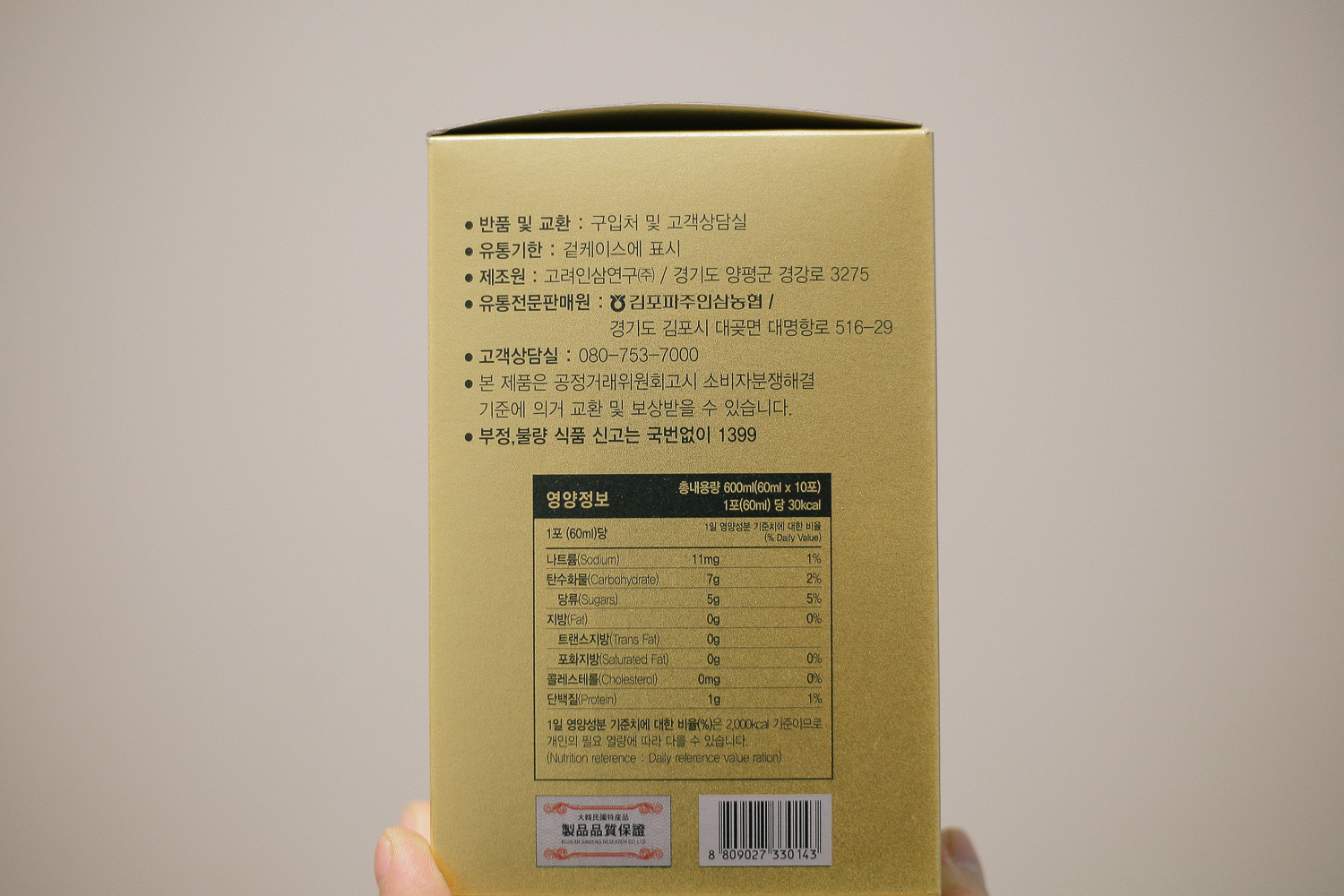 함량 된 재료로는 산삼배양근, 홍삼, 이소말토올리고당, 본초 혼합농축액, 천궁, 작양, 숙지황, 영지, 황기, 대추, 당귀, 천궁, 홍삼, 비타민C 등 몸에 좋은 많은 영양소들로 이루어졌있었다. 10포 밖에 없어서 아쉽지만 1포씩 아내와 사이좋게 나눠먹어야겠다 :)