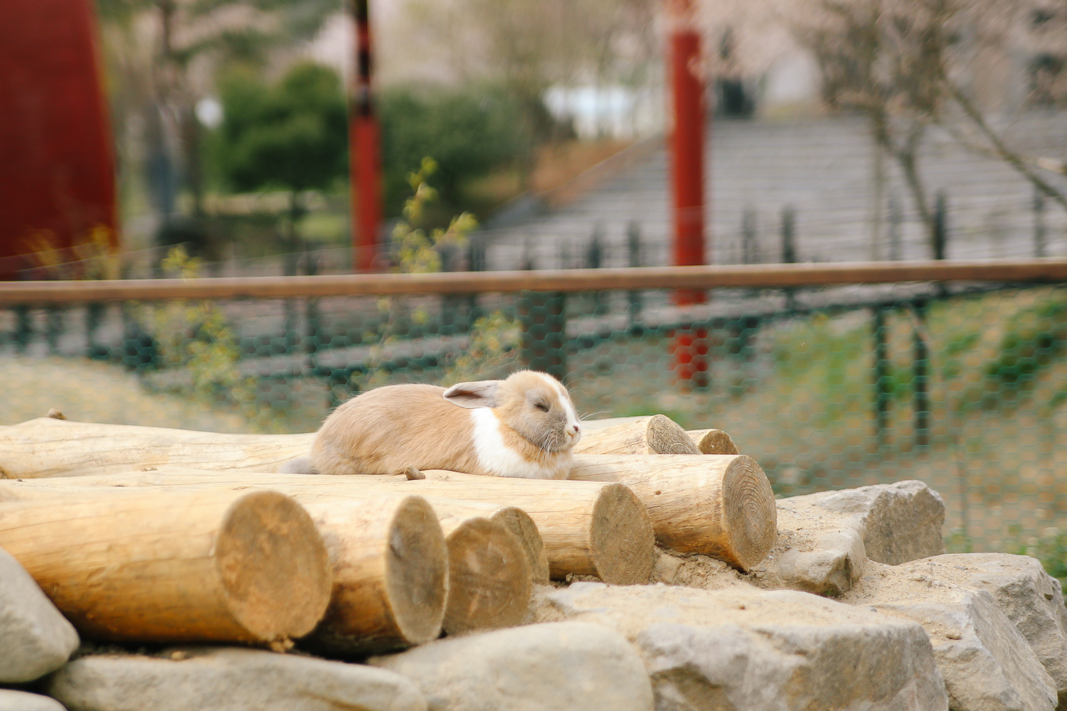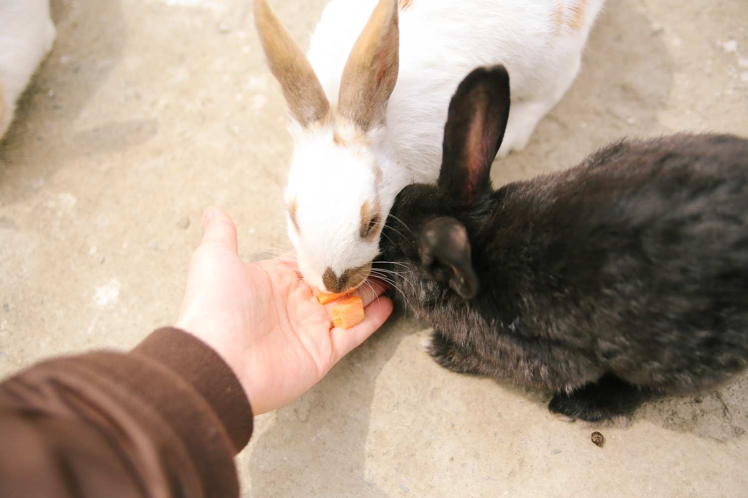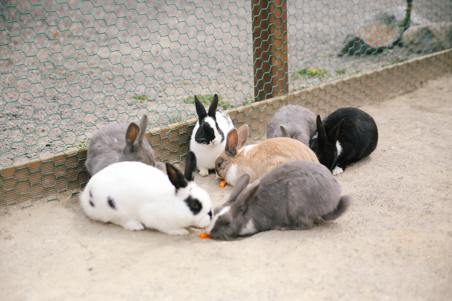 귀요미 토끼들, 낮잠 자는 토끼들. 약간의 당근과 양배추를 뜯어주어 아이들에게 주었다. 그걸 본 토끼들은 삼삼오오 몰려들기 시작한다. 웃긴 게 한번 주고 천천히 둘러보면 또 먹이를 주는 줄 알고 졸졸 쫓아온다. 너무나 작고 솜뭉치처럼 인기척이 없기 때문에 천천히 걸어 다니길 바란다. 실수로 토끼 아이들을 칠 수 있으니, 조심히 걷도록 하자.