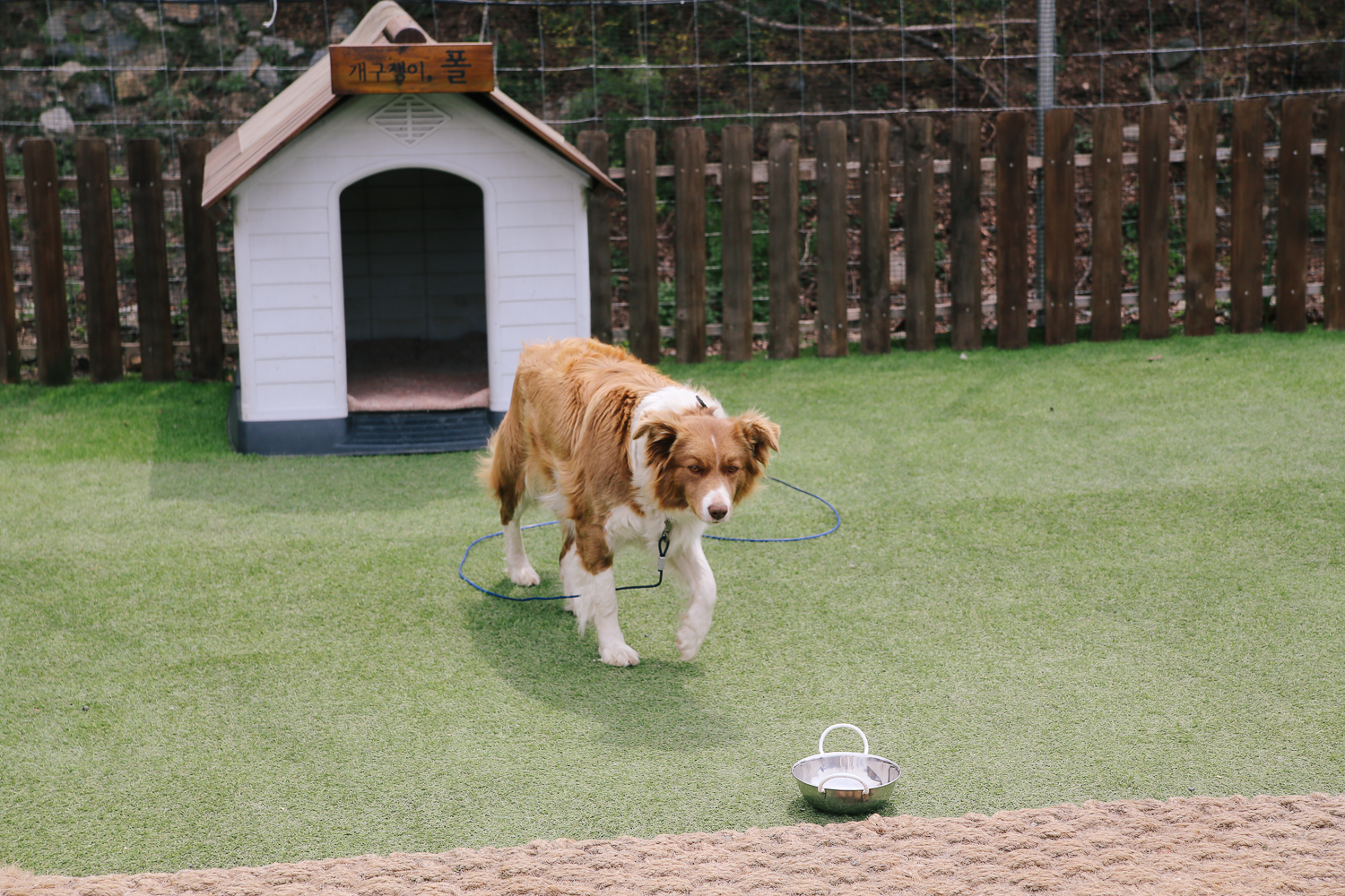 다양한 동물들이 보여있는 비닐하우스 앞쪽에 있는 강아지 두 마리. 래브라도 레트리버와 이름 모를 종 대형견이 있었다. 근데 이 녀석 정말 정말 잘생겼었다. 종이 보드 콜리 같긴 한데 지식이 없다 보니 확신이 안 선다;;^^;; 아무튼 갈색 눈동자와 품격이 느껴지는 털이 너무나 멋져 보였다.