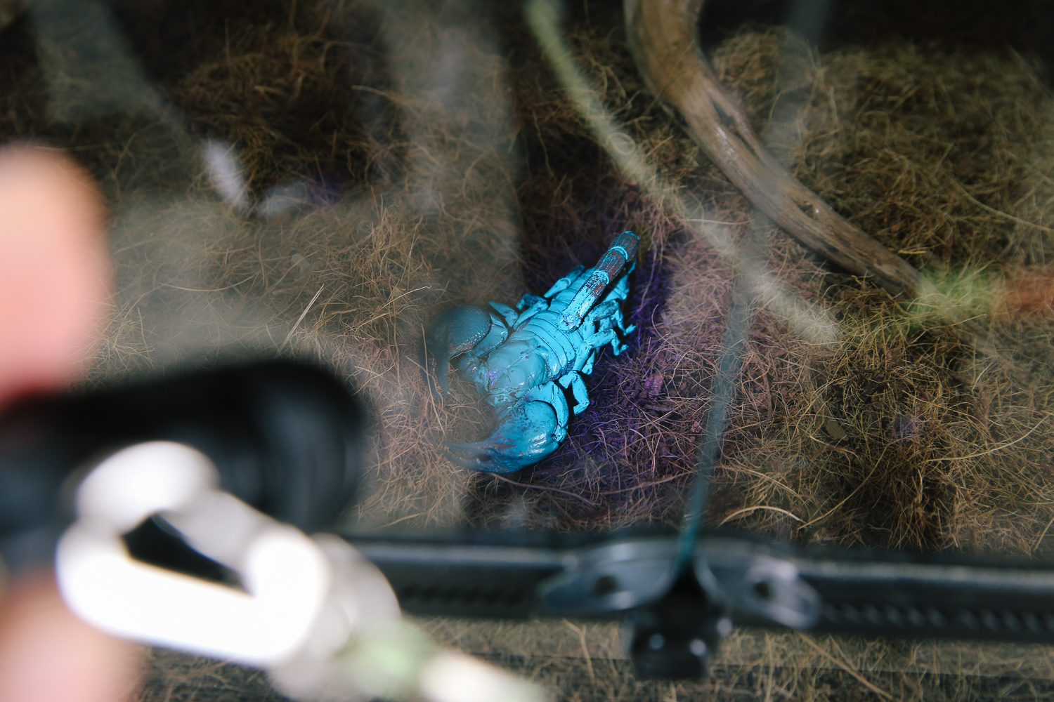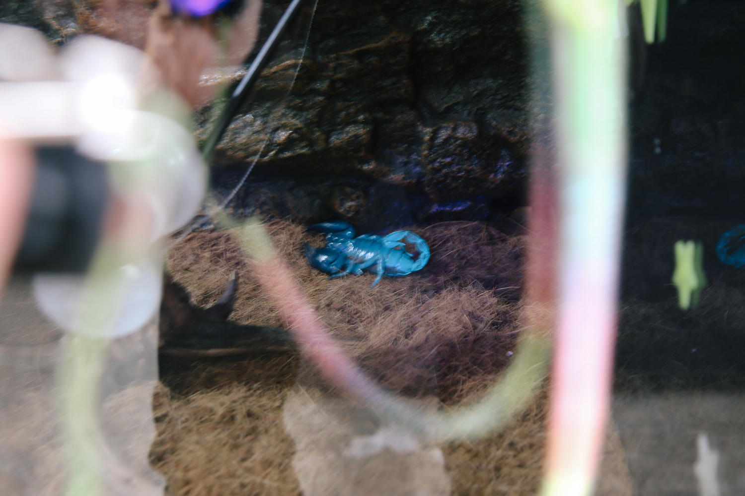 이건 어떤 사진인가 하면, 직원분께서 플래시로 전갈을 비춰보라고 했더니 저렇게 하늘색으로 보였다. 원래는 검은색인데 야광처럼 자체 발광하는 성분이 껍질에 있는 것 같았다. 신기방기...