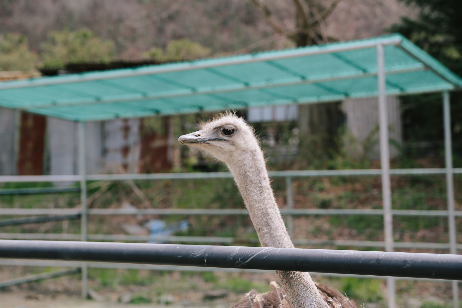 하우스 밖으로 나서면 멀리 울타리가 쳐있는데 그곳엔 타조, 당나귀, 양이 있다.