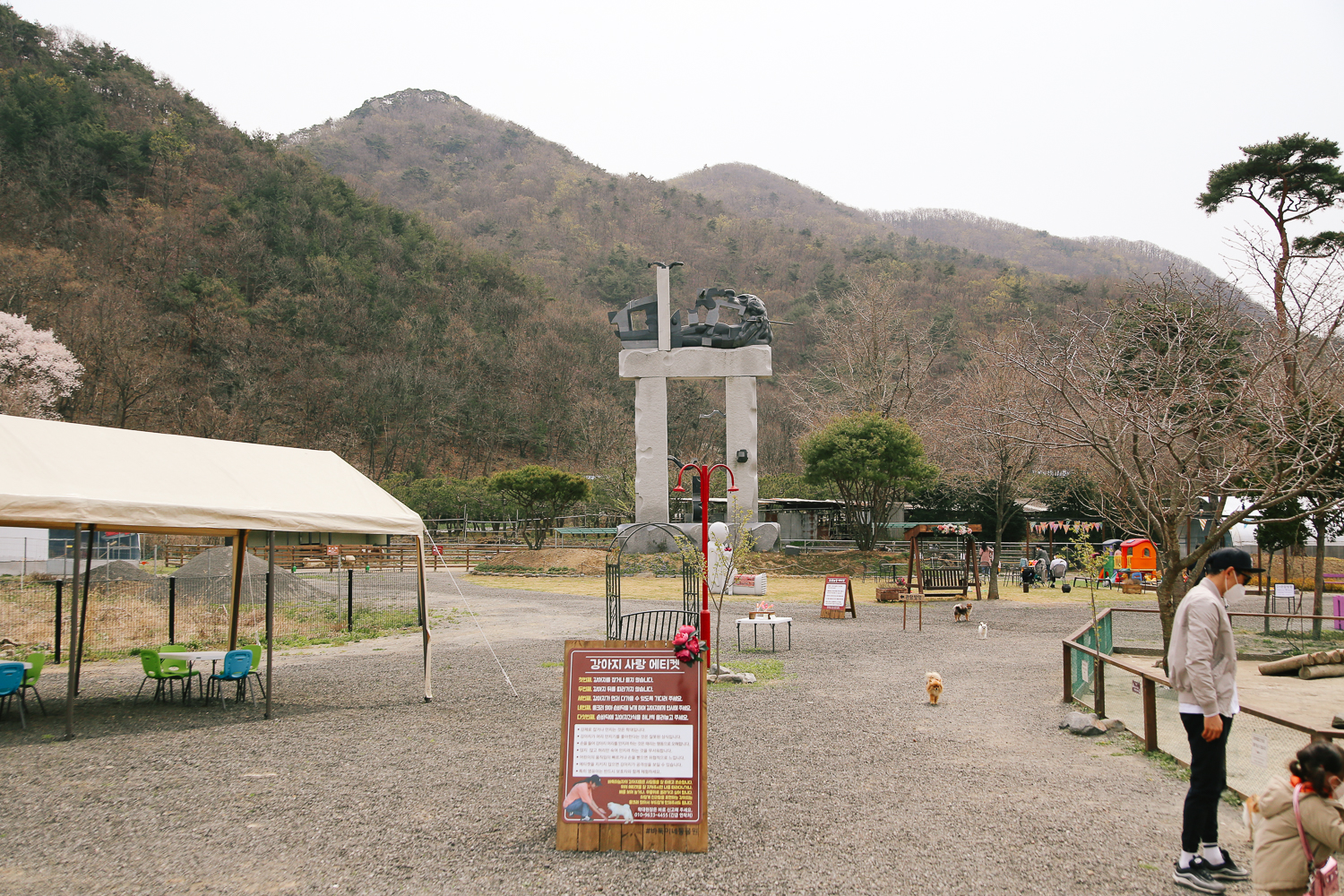 - 동물원 내에 온순한 소형견이 자유롭게 돌아다니고 있습니다.