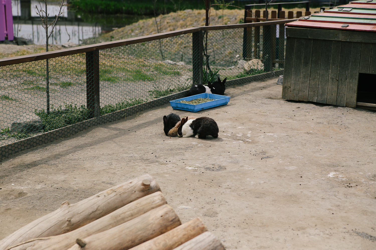 먼저 방문한 곳은 토끼가 있는 곳. 이곳은 울타리로 막혀있지만 출입이 가능하도록 되어있다. 바둑이네 동물원 동물들의 특징이 너무나 적극적이라는 것! 먹이를 먹기 위해 사람을 무서워하지 않고 모두들 하나같이 들이댄다. 그래서 더 교감되고 예뻐서 힐링이 된다 :)
