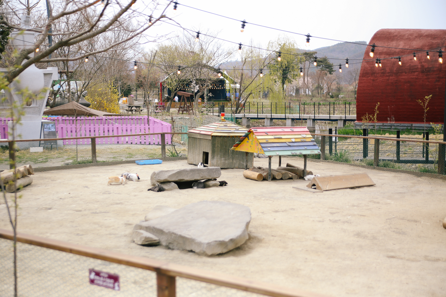 오랜만에 방문한 개화예술공원은 조금의 변화가 있었다. 그중에 하나가 바둑이네 동물원이가 생긴 것! 넓게 울타리가 쳐있고 그 안에 귀여운 댕댕이들이 많이 돌아다니는 것을 볼 수 있다. 하지만 강아지들만 있는 것이 아닌, 토끼, 타조, 라쿤, 미어캣, 프레리독, 꽃사슴, 당나귀, 육지거북, 미니돼지, 양 등 다양한 동물들이 있다.
