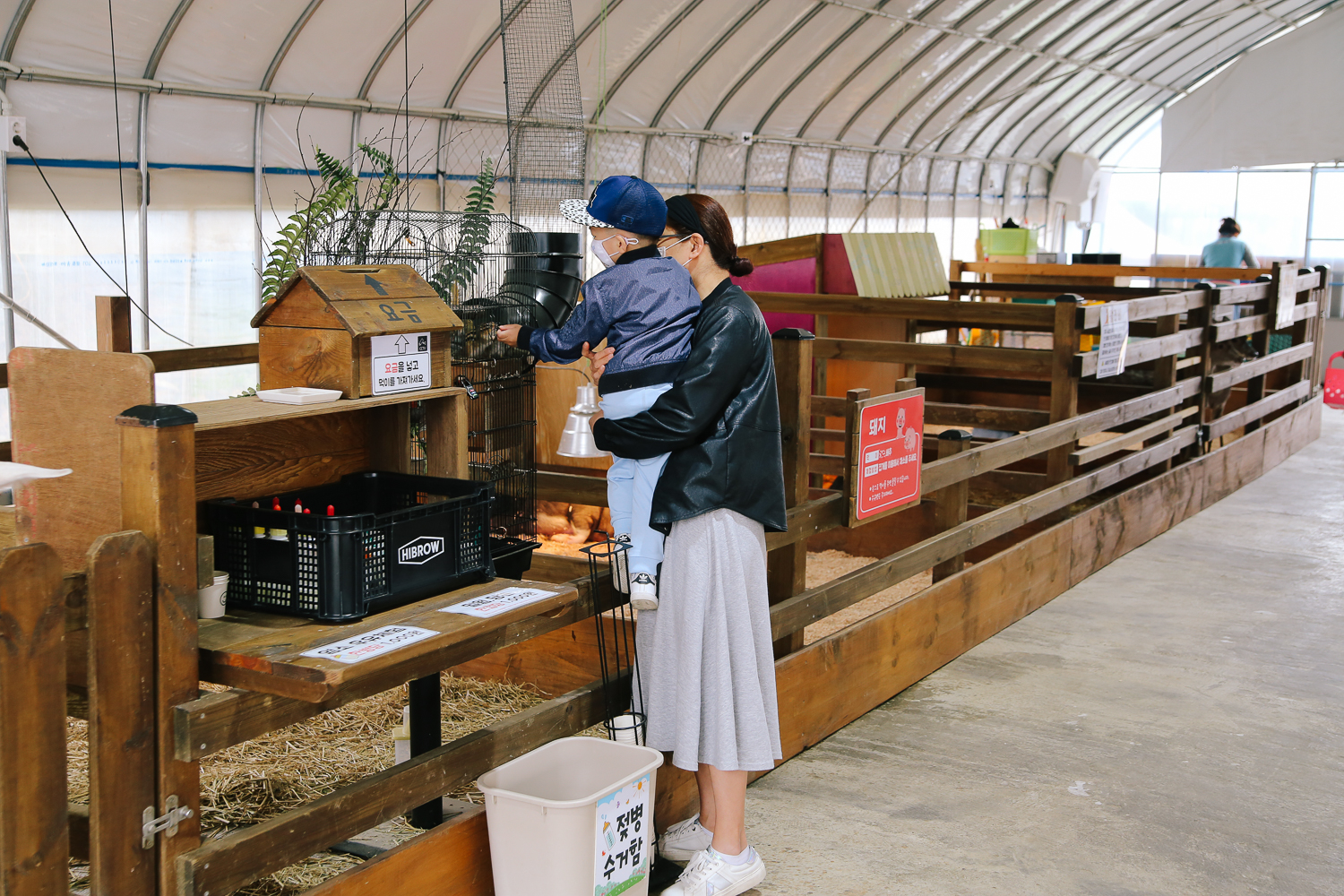 이곳이 다양한 동물들이 보여있는 비닐하우스이다. 우측에는 손을 세척할 수 있는 세면대도 준비된 모습이다.