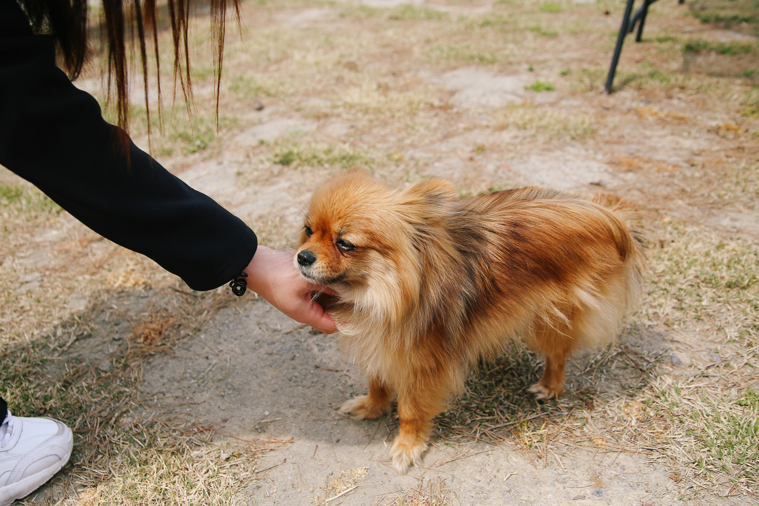 중간에 우리를 쫓아온 댕댕이에게 간식을 주고 쓰담 쓰담해주는 아내. 바둑이네 동물원에 있는 댕댕이는 90%가 소형견이다. 앞에 있던 2마리의 대형견을 제외하고는.. 그래서 아이들도 무섭지 않게 댕댕이와 교감하며 산책을 할 수 있는 동물원이다.