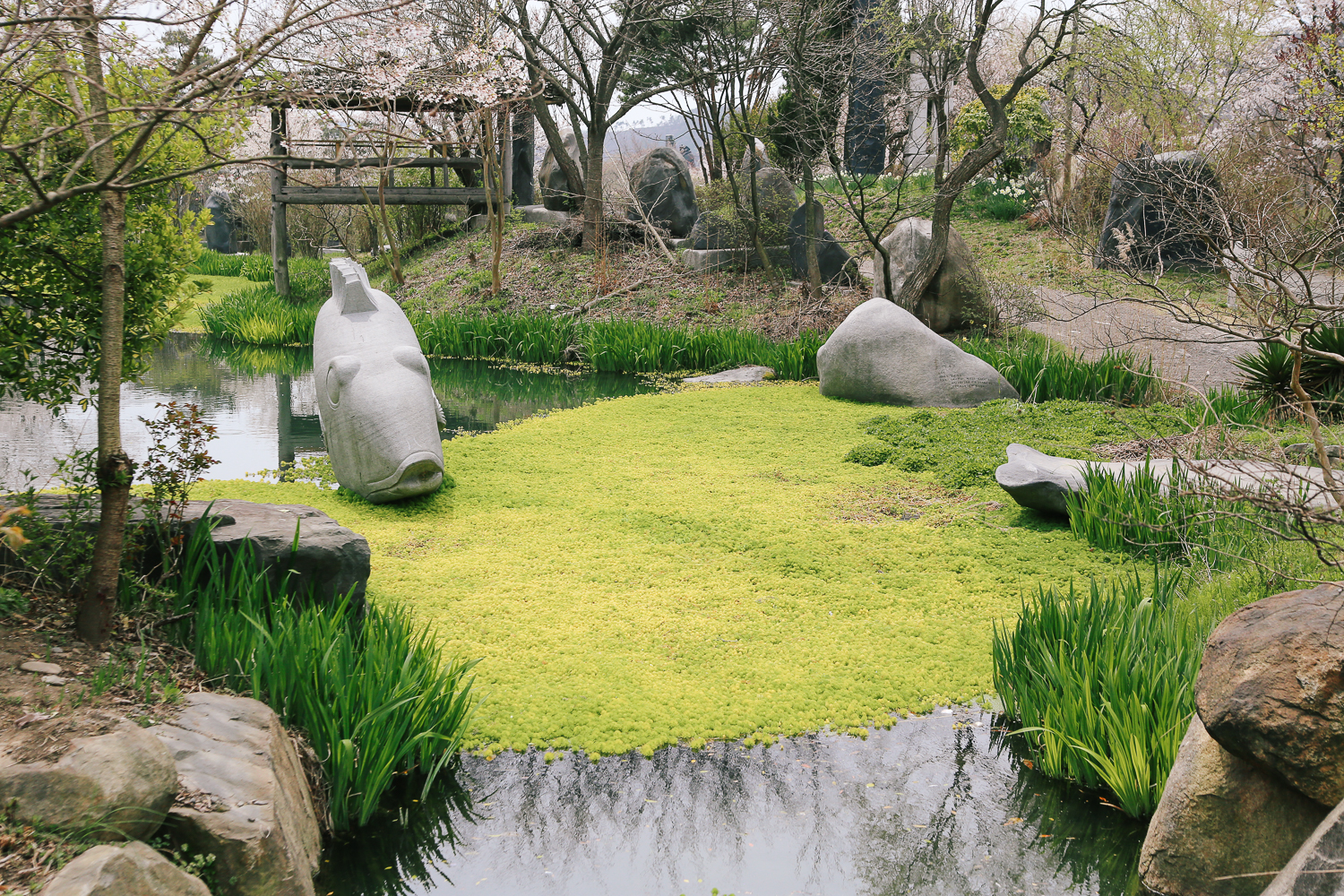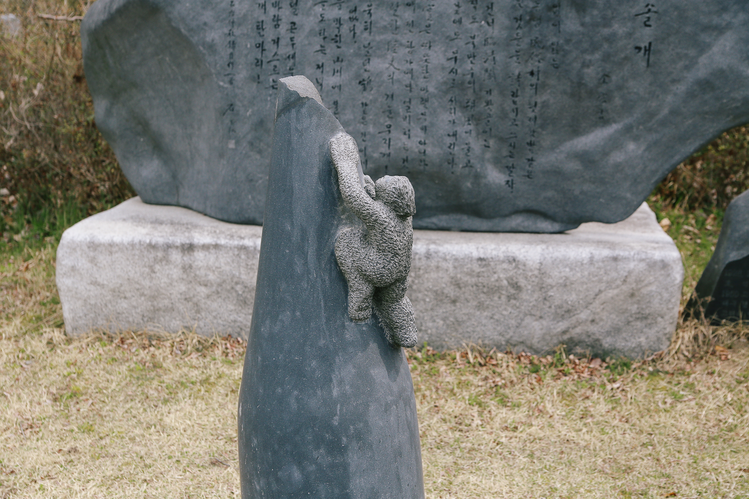 이제 허브랜드 쪽으로 발걸음을 옮긴다. 오가는 길에 다양한 모양의 오석 조각상들이 보인다. 이건 조금 귀여워서 찰칵 :)